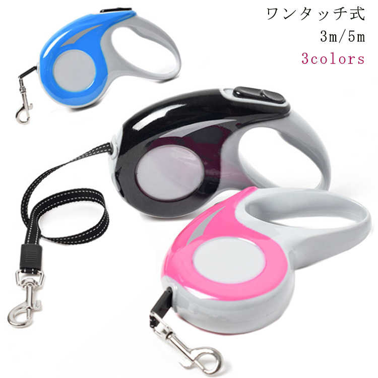 犬 猫 猫用リード 5m 散歩 リード 3m 小型犬 お散歩グッズ ワンタッチ式 伸縮可能 犬用リード ワンタッチロック 3メートル 5メートル 自動巻き戻し式