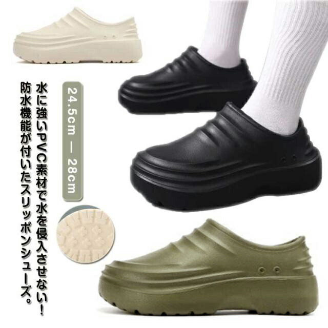 コックシューズ サンダル スリッポン ブラック(裏起毛あり) ブラック(裏起毛なし) グリーン(裏起毛なし) オフホワイト(裏起毛なし) 39(24.5cm) 40(25.0cm) 41(25.5cm) 42(26.0cm) 43(26.5cm) 44(27cm) 45(27.5cm) 46(28cm)