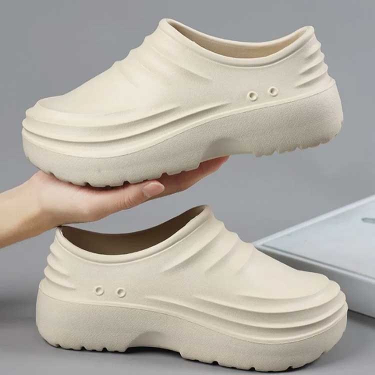 水に強いPVC素材で水を侵入させない!防水機能が付いたスリッポンシューズ。