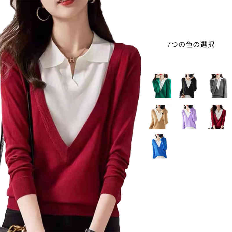シャツニット 長袖 レディース 重ね着 レディースファッション 豊富な品揃え グリーン ブラック グレー キャメル パープル レッド ブルー XS S M L XL 2XL 3XL