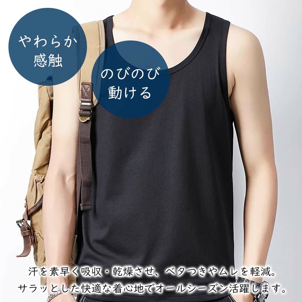 タンクトップ メンズ 天然素材で敏感肌にも ノースリーブ インナー シャツ 白 黒 下着 肌着 吸汗速乾 防菌防臭 通気 爽快 速乾 涼感 薄手 ストレッチ シンプル 運動着 スポ フィットネス