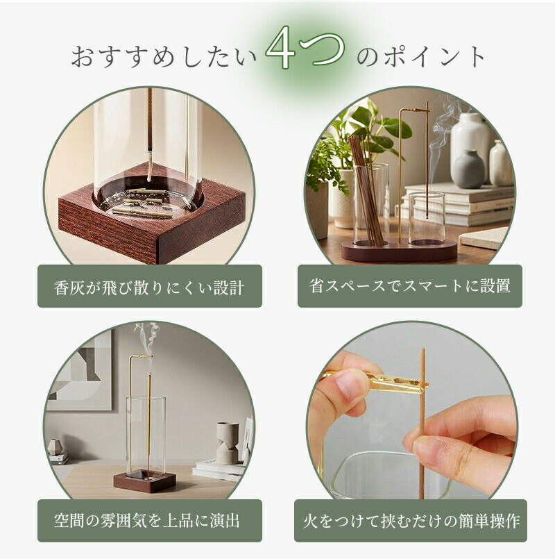 お香が倒れたり、灰が散りにくい構造 お香立て 香炉 線香立て 飛び散らない 線香 北欧 ガラス製 リラックス 仏壇