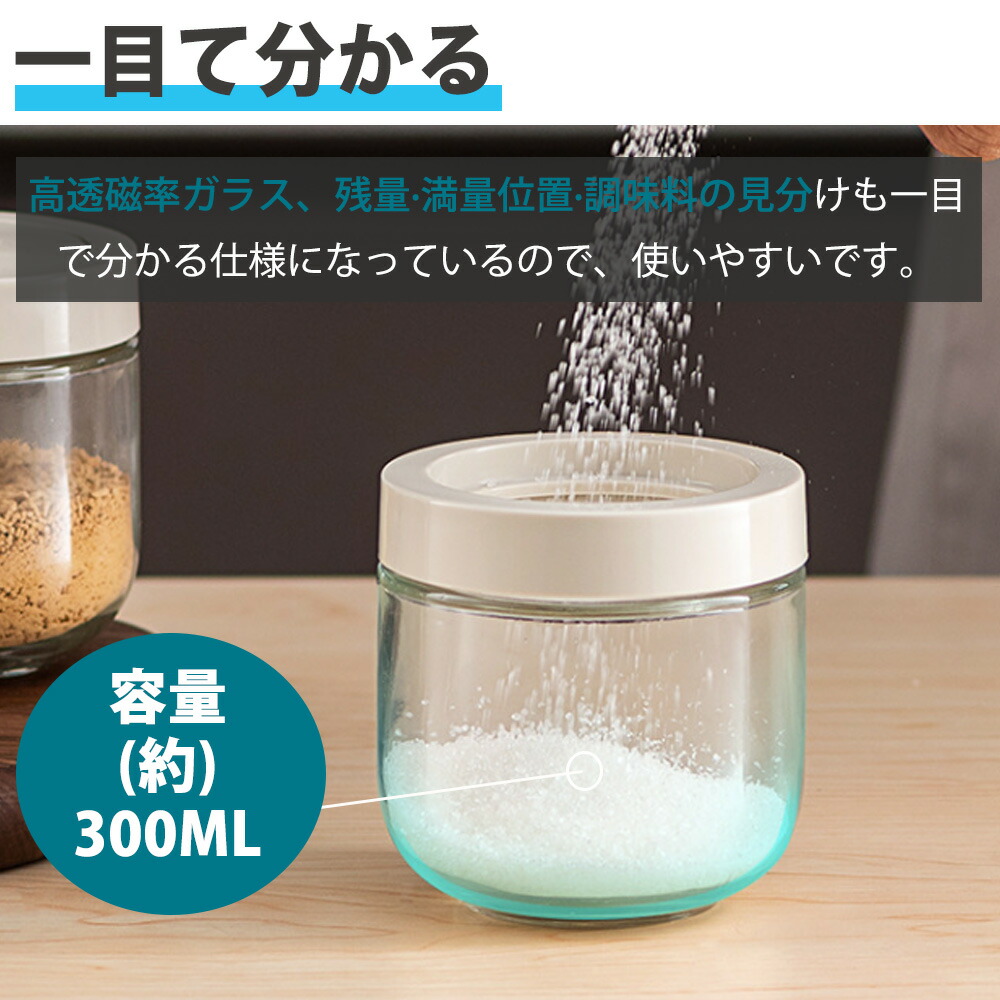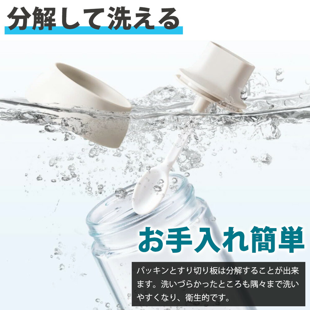 一目て分かる:ガラス、残量 満量位置 調味料の見分けも一目で分かる仕様になっているお手入れ簡単:パッキンとすり切り板は分解することが出来ます。洗いづらかったところも隅々まで洗いやすくなり、衛生的です。