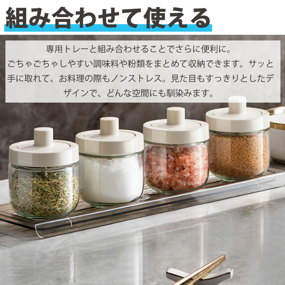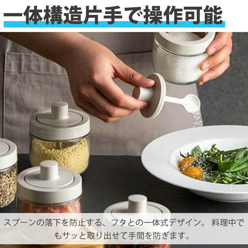 商品名:調味料入れ 密閉 スプーン付き 調味料容器 グラス 一体構造式