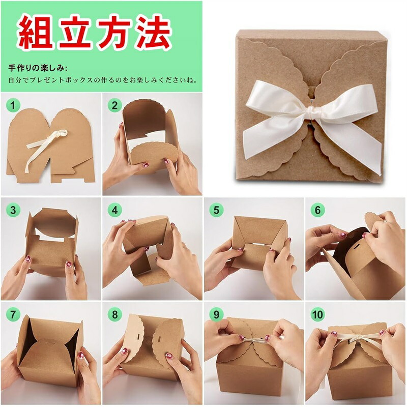 ギフトボックス 包装箱 リボン付き 10個セット ファッション プレゼント 贈り物 無地 キャンディボックス 四角形 組み立て簡単 かわいい ギフト バレンタインデー 丈夫 おやつ