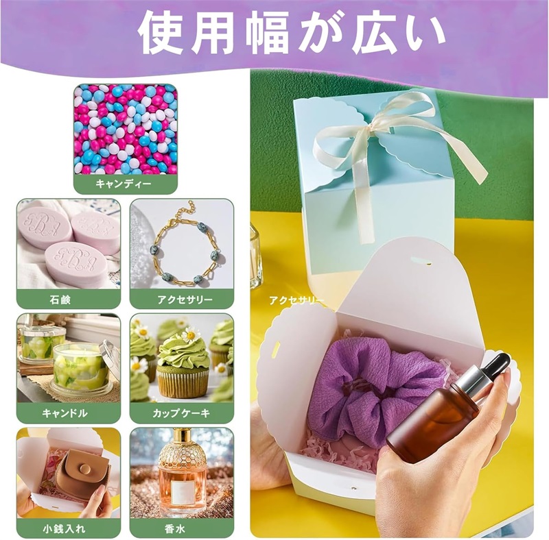 【幅広い用途】サイズは適度で、手作りのおやつ、小物入れ、誕生日、クリスマス、ハロウィン、お正月、ハロウィーン、感謝祭、パーティー、結婚式、ベビーシャワー、卒業式、母の日などの記念日の贈り物に適しています。また、キャンディー、チョコレート、クッキー、デザート、キャンドル、DIYギフト、小物などの収納にもおすすめです。
