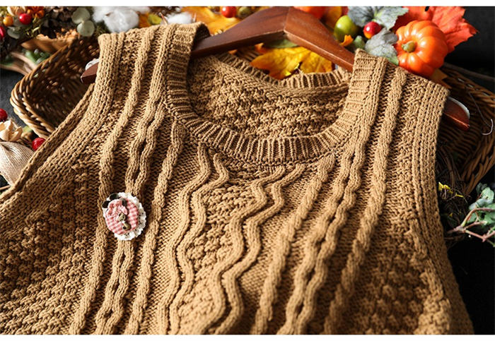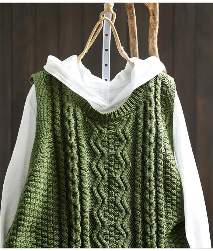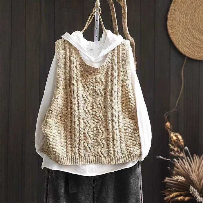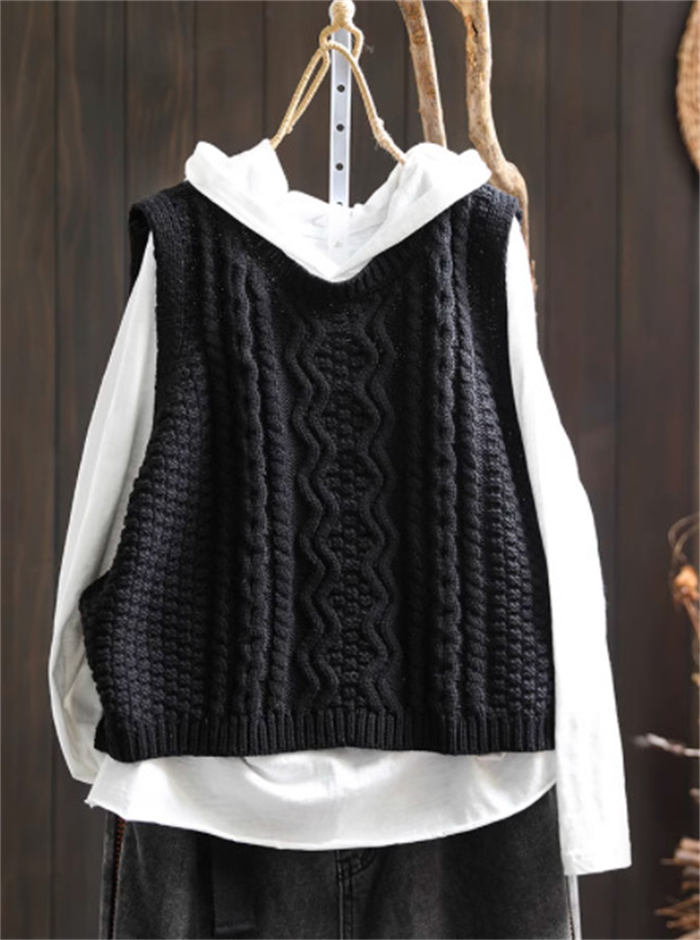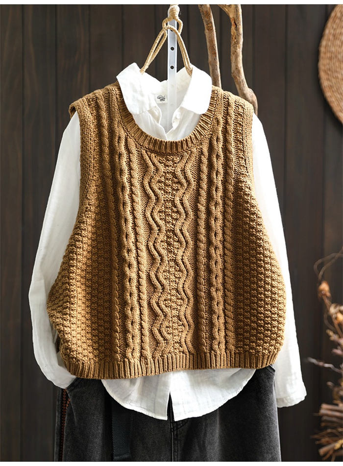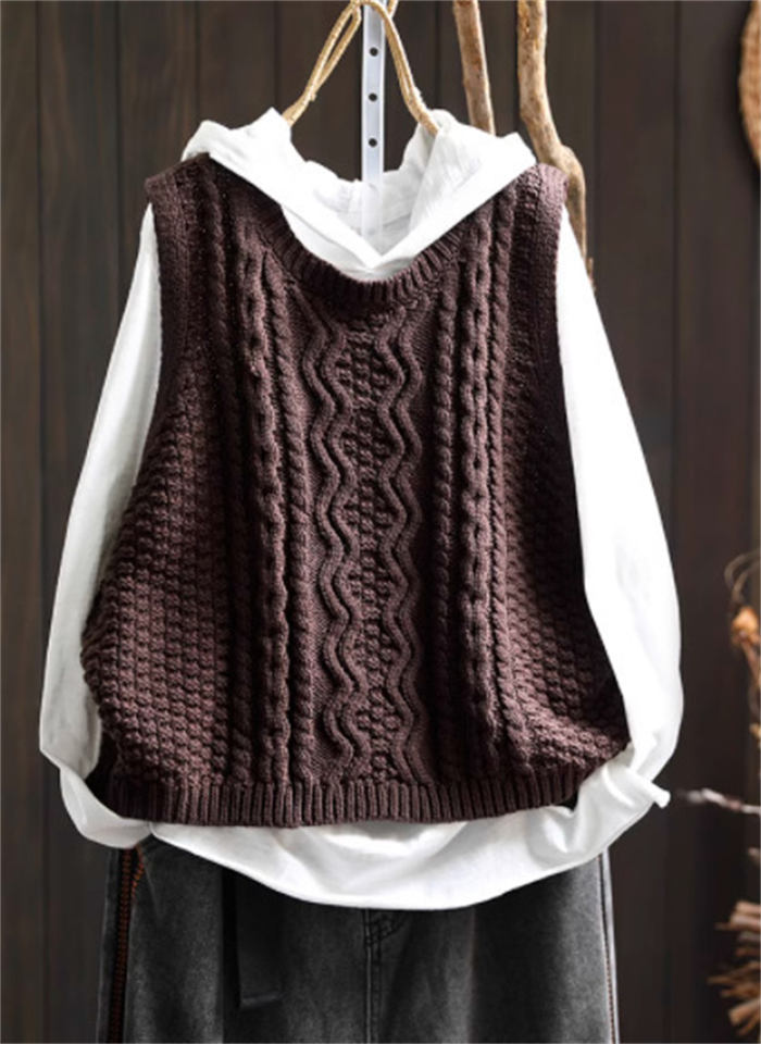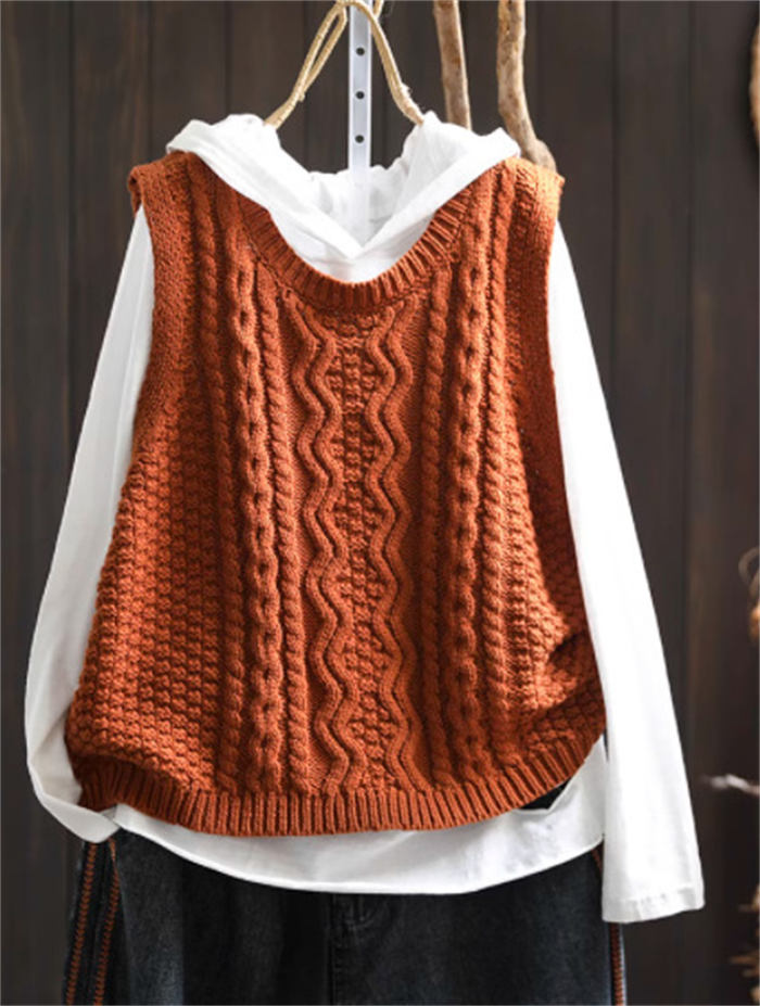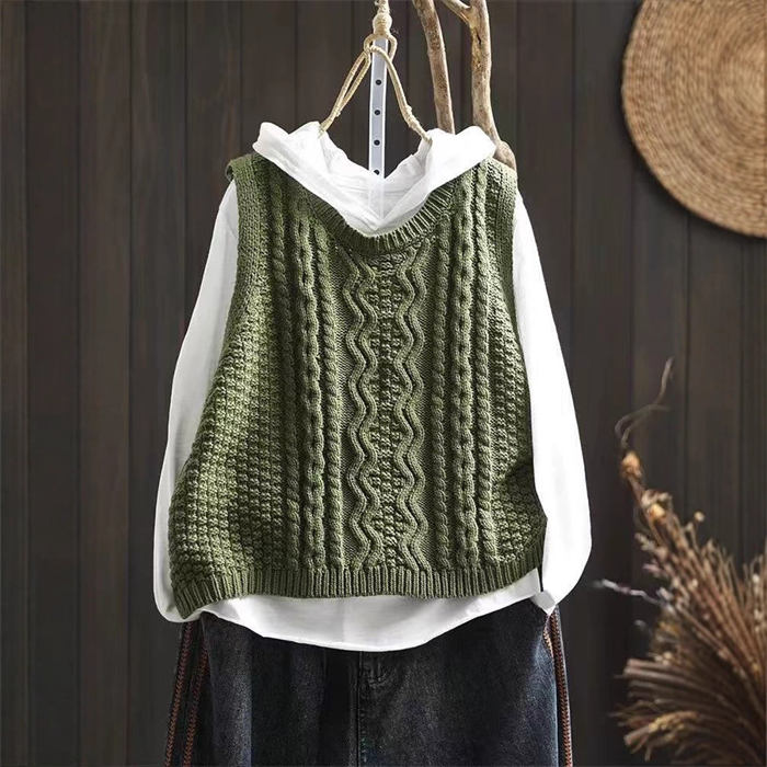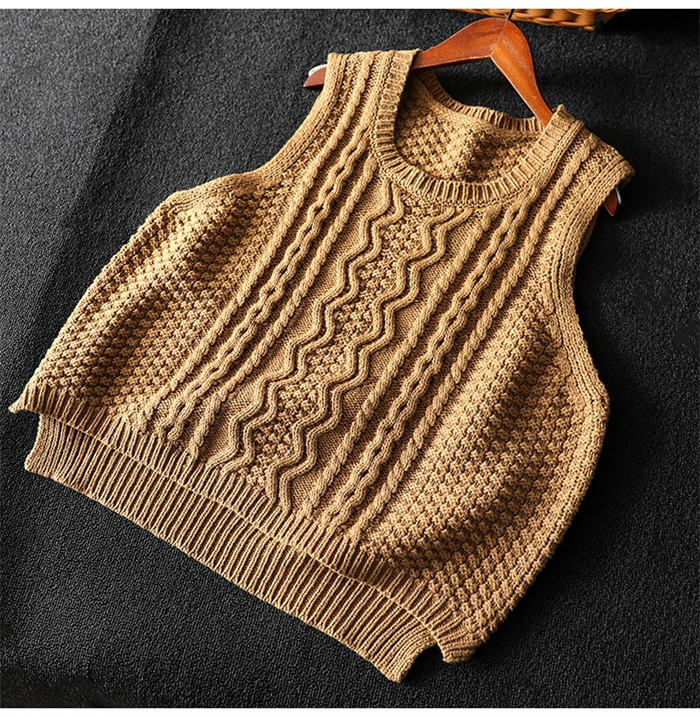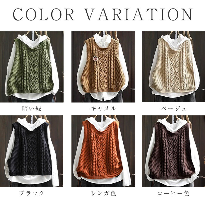 ケーブル編み ニットベスト Uネック トップス ベスト 早い者勝ち 暗い緑 キャメル ベージュ ブラック レンガ色 コーヒー色