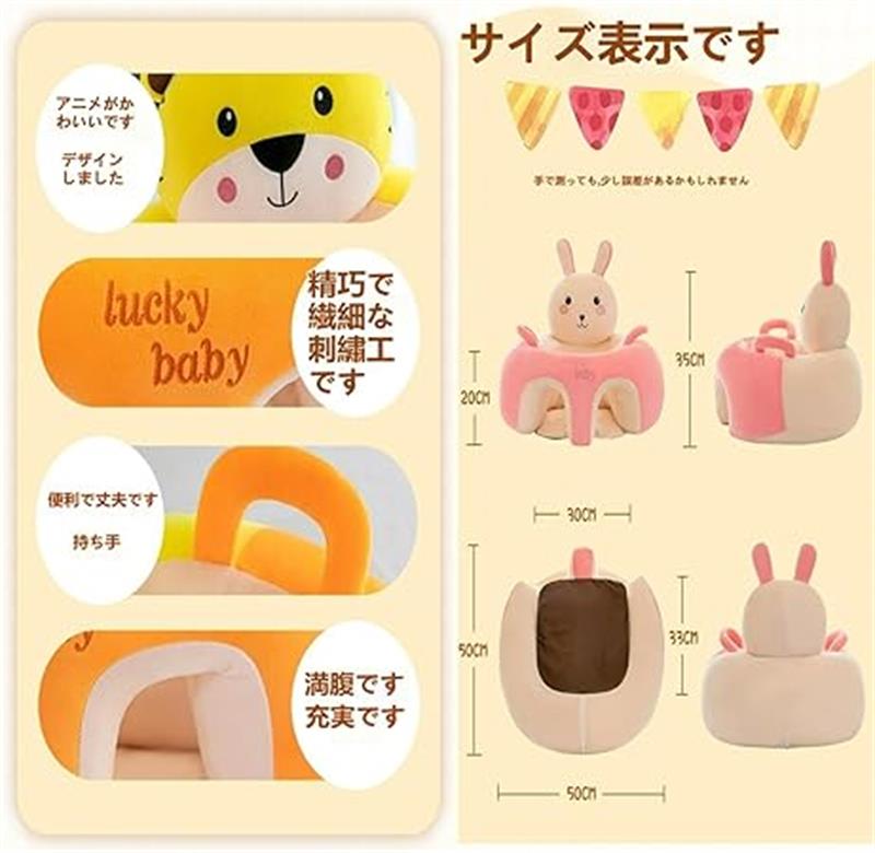 ベビーソファー お座りチェア お座り練習 転倒防止 クッション 安定感満点 幼児 保護 滑り止め かわいい 6ヶ月~12ヶ月 ぬいぐるみ ふわふわ おもちゃ 子供用 お食事グッズ ベビー 水洗い 椅子