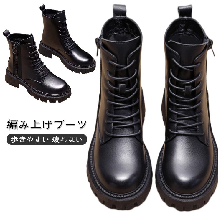 ブーツ レースアップブーツ 甲高 ショートブーツ 編み上げブーツ ジュニア レディース 幅広 靴 滑り止め 厚底 袴 レースアップ ファスナー ジッパー 歩きやすい 疲れない 大 シューズ