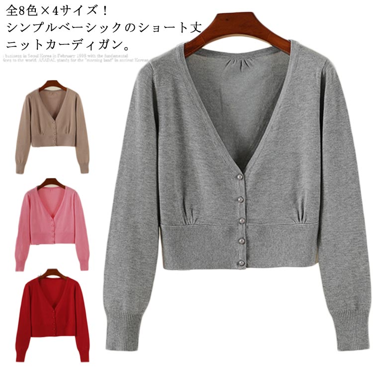 全8色×4サイズ 無地カーディガン ショート丈 ニットカーディガン ボタン開き カーディガン ニット 羽織り 長袖 シンプル ワンカラー レディース 春服