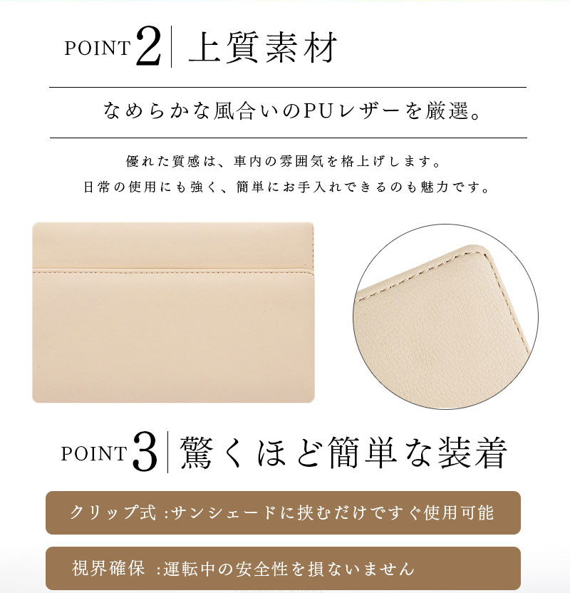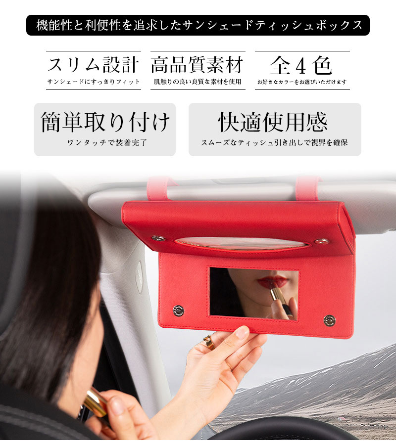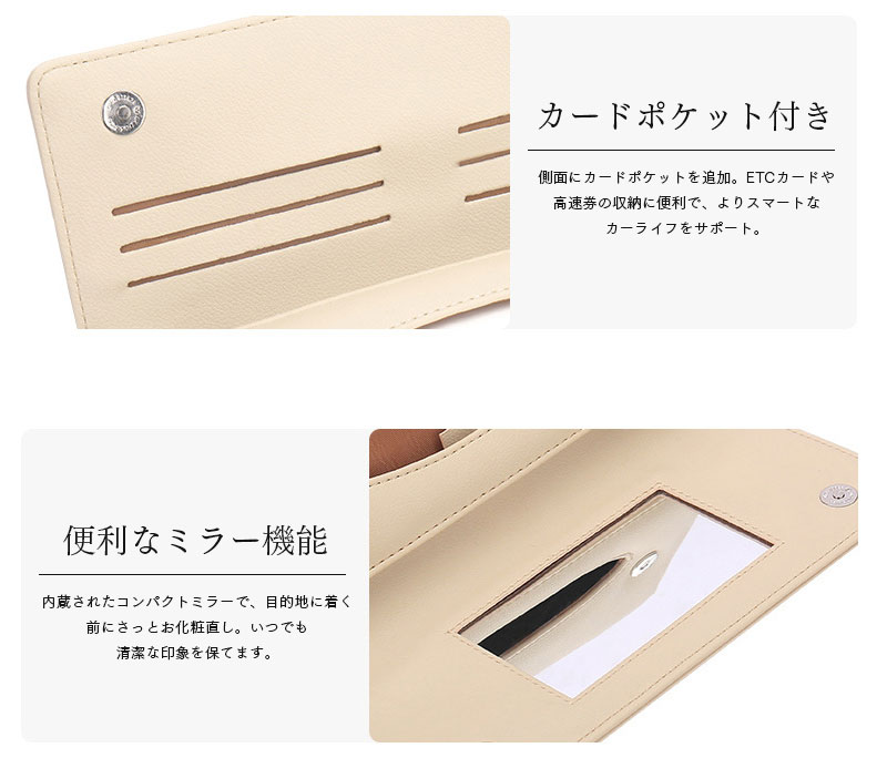 ティッシュケース 車用 サンバイザー ベージュ レッド ブラウン ブラック ミラー カードポケット