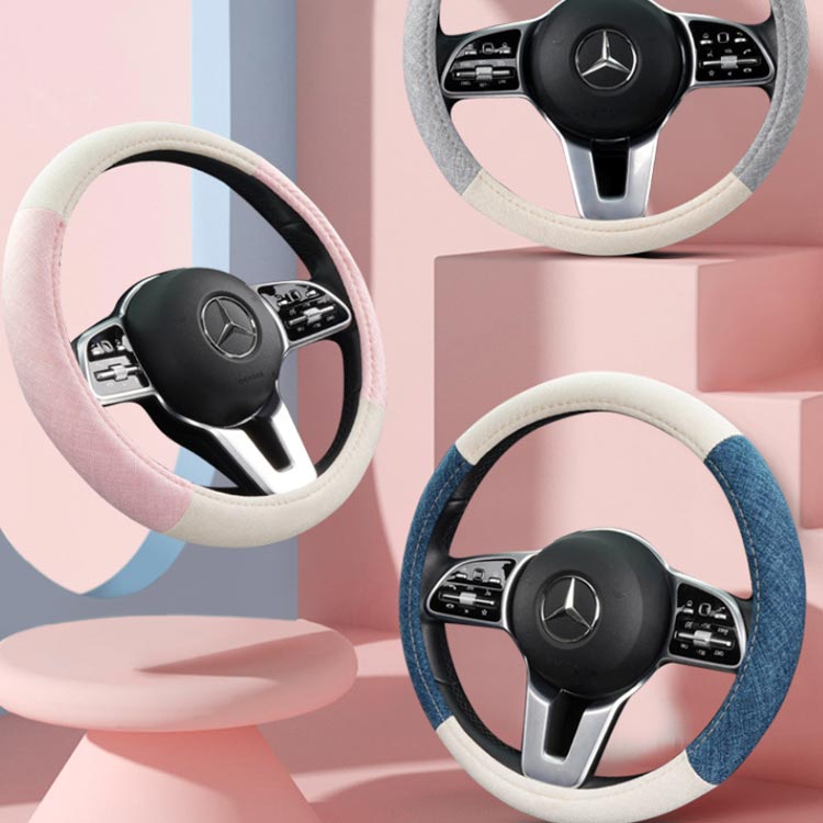 模様替え 乗用車用 バイカラー 綿麻 軽自動車 車 ハンドルカバー カー用品 自動車 おしゃれ 四季汎用 握り心地よい 38cm O型 D型 滑りにくい 内装