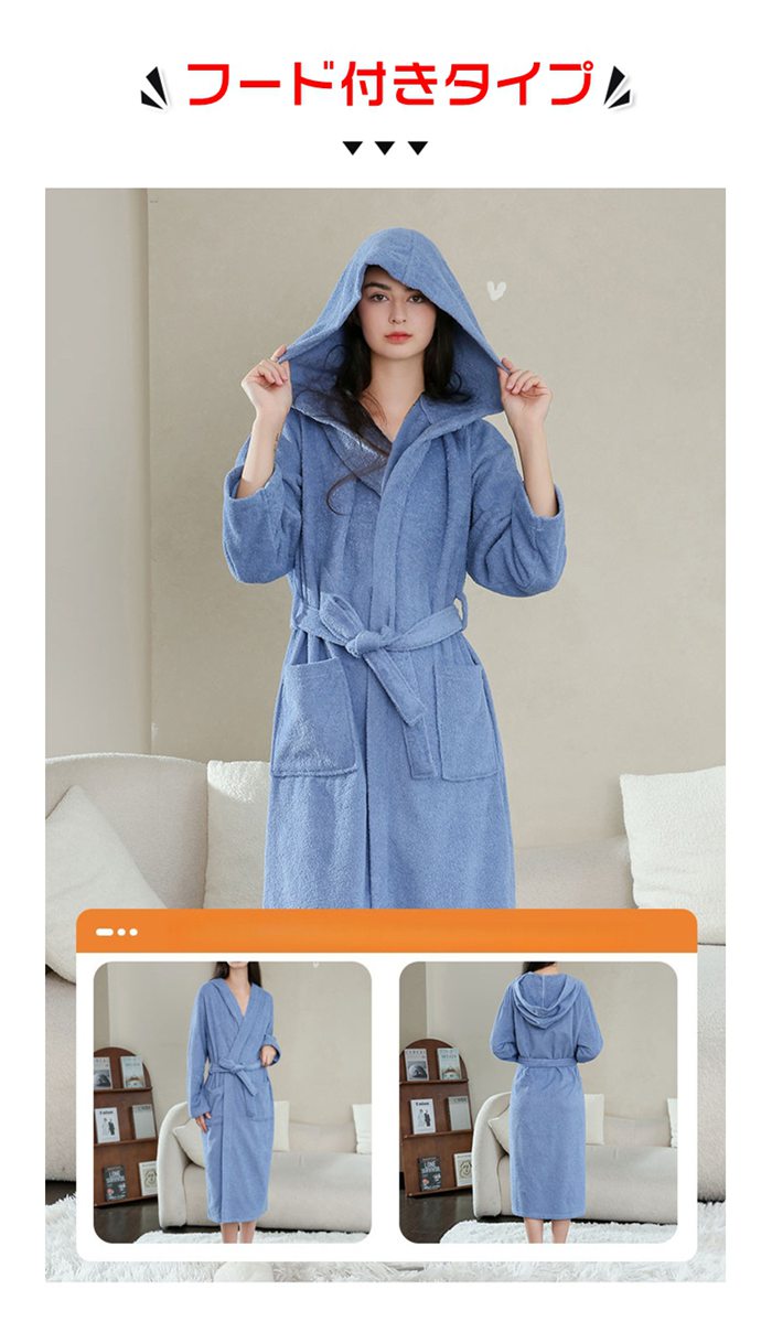 バスローブ タオル地 レディース ガウ レディース ナイトウェア ルームウェア バスローブ 新登場! 杏色 ホワイト グレー ピンク パープル ローズ 舛花色 フード付き-ダークブルー フード付き-パープル フード付き-スカイブルー フード付き-ピンク フード付き-ブルー フード付き-ホワイト M L XL