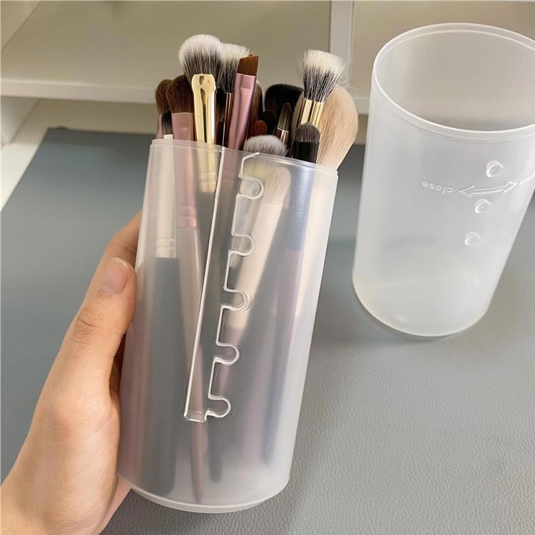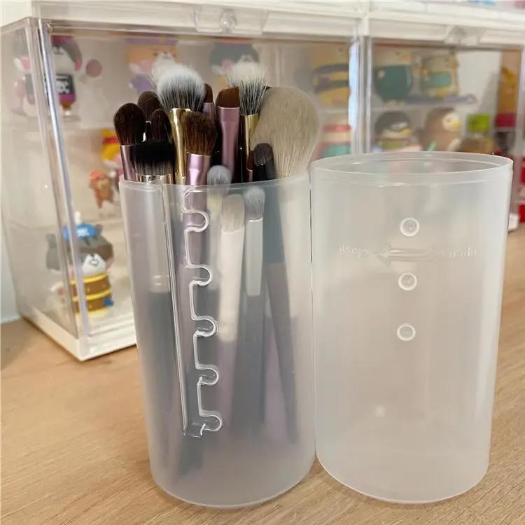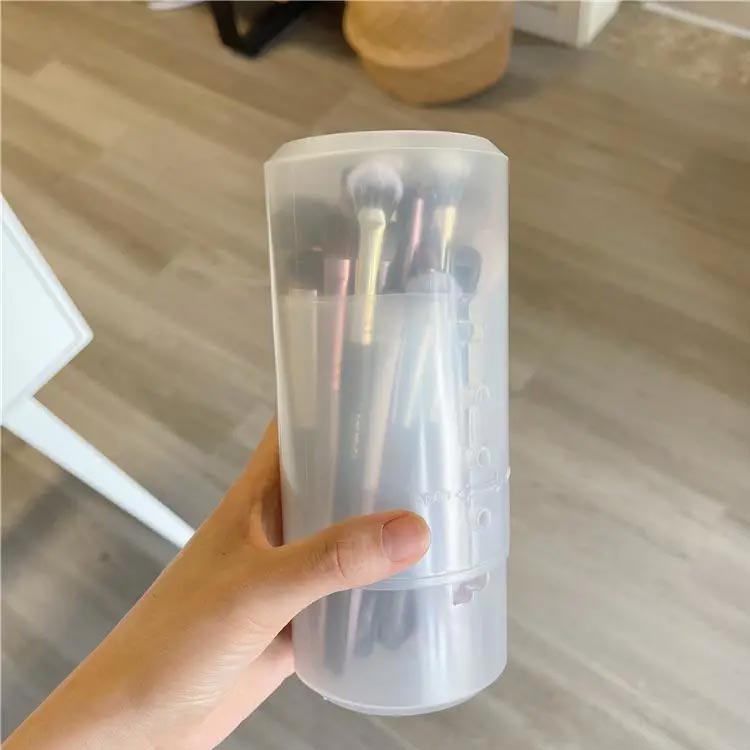 メイクブラシ筒型収納ケース 高さ調整可能 メイクブラシ収納ボックス ふた付き 防塵 化粧筆立て ホルダー 小物入れ おしゃれ 化粧道具 メイクブラシスタンド 透明 コスメ収納
