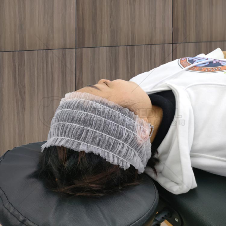 不織布製で柔らかく付け心地抜群。破れにくく、肌、髪に優しい。