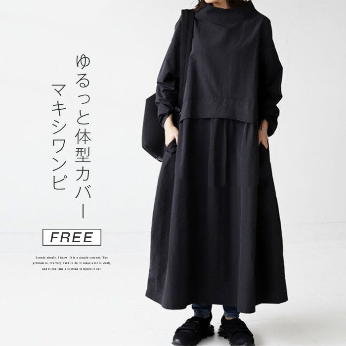 ワンピース シャツワンピース レディース 長袖 秋 春 ロングワンピース 切り替え Aライン フレア ミモレ丈 無地 オシャレ デザイン オフィス ポケット 体型カバー 通勤 ゆったり