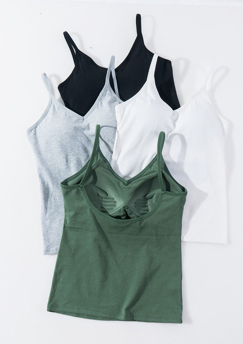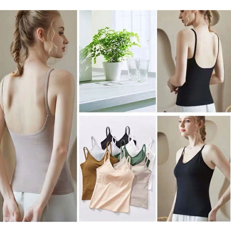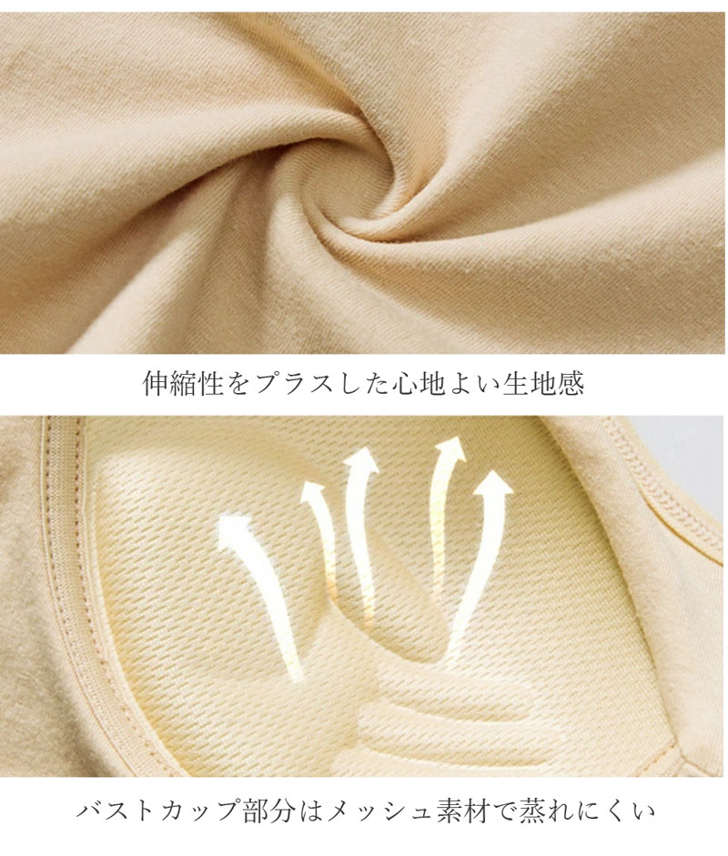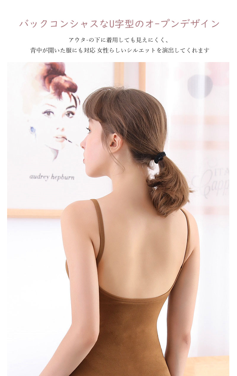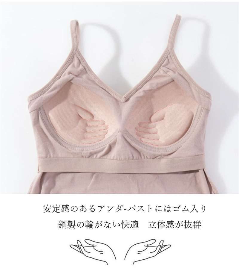 仕事や学校のONシーンから、休日のOFFシーンまで使えるカップ付きキャミソール。