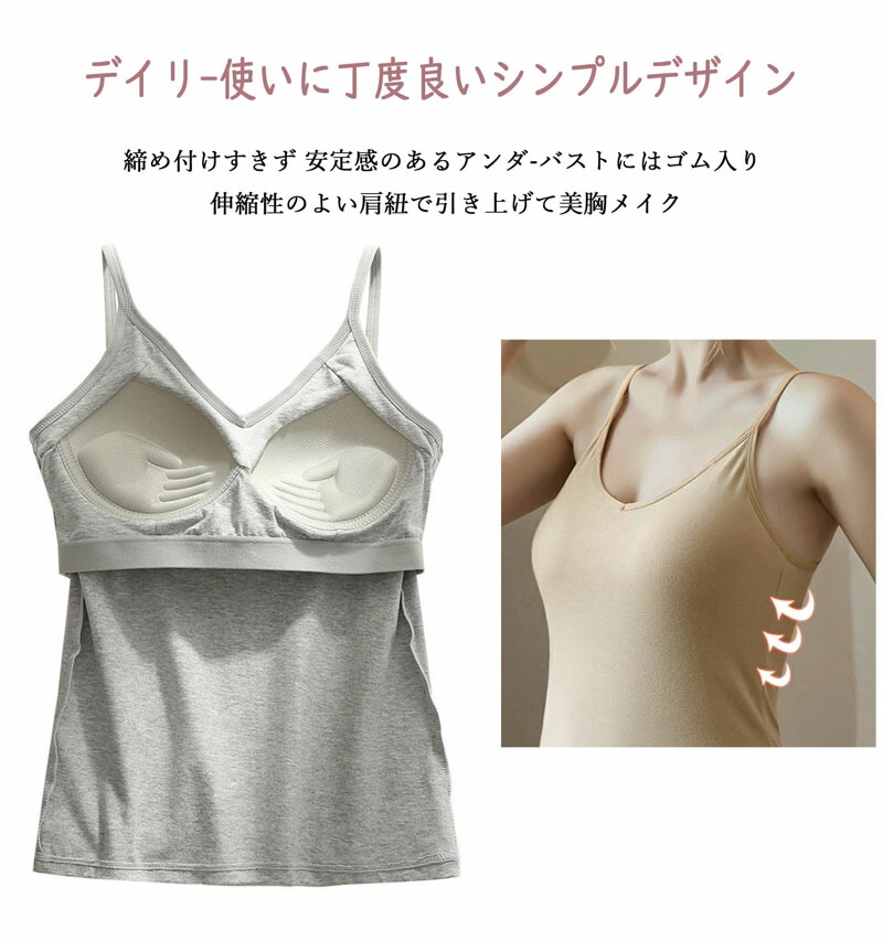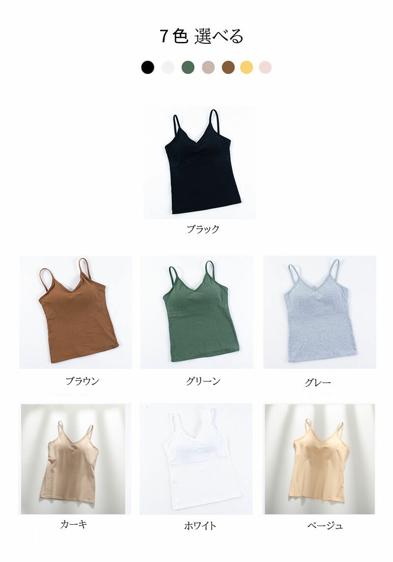 仕事や学校のONシーンから、休日のOFFシーンまで使えるカップ付きキャミソール♪