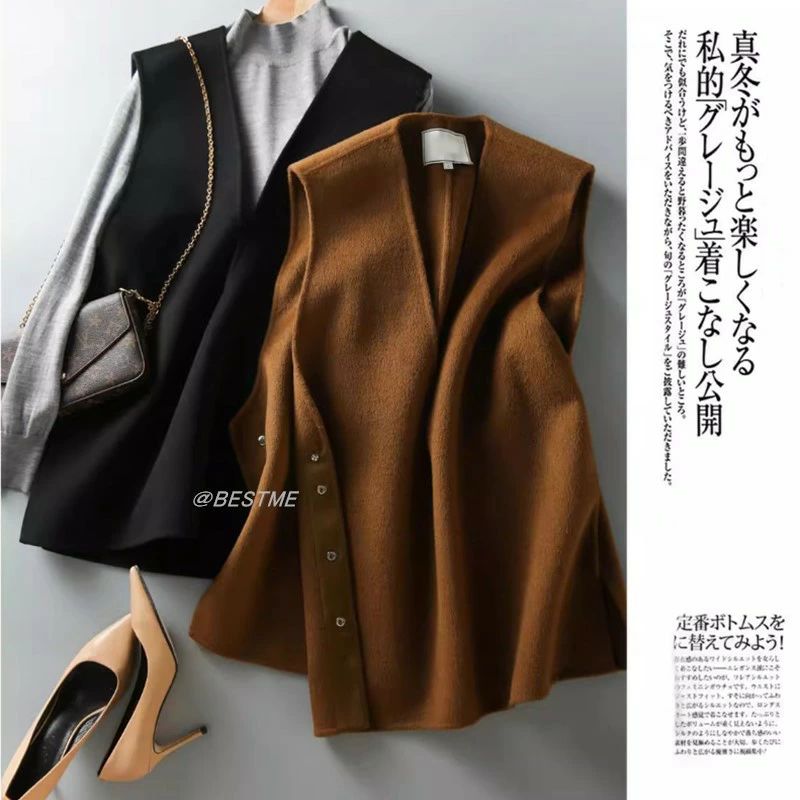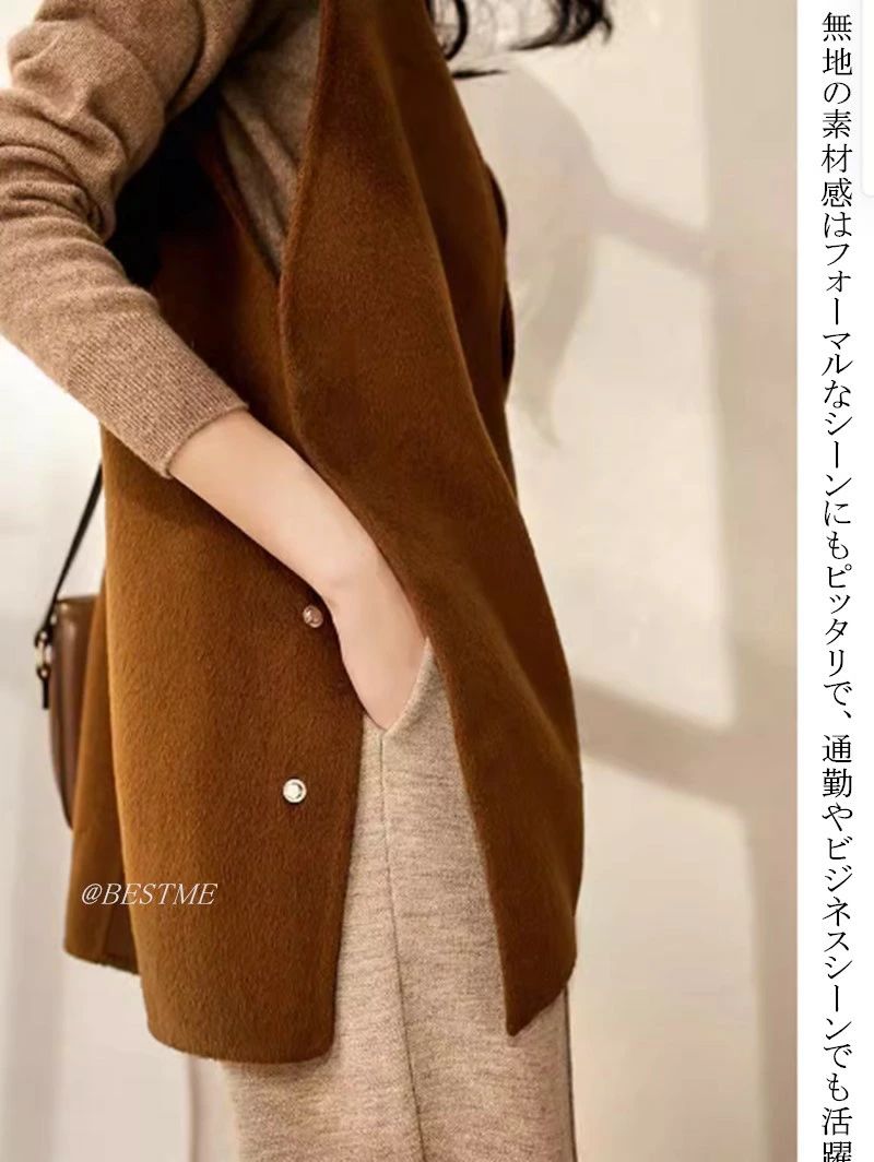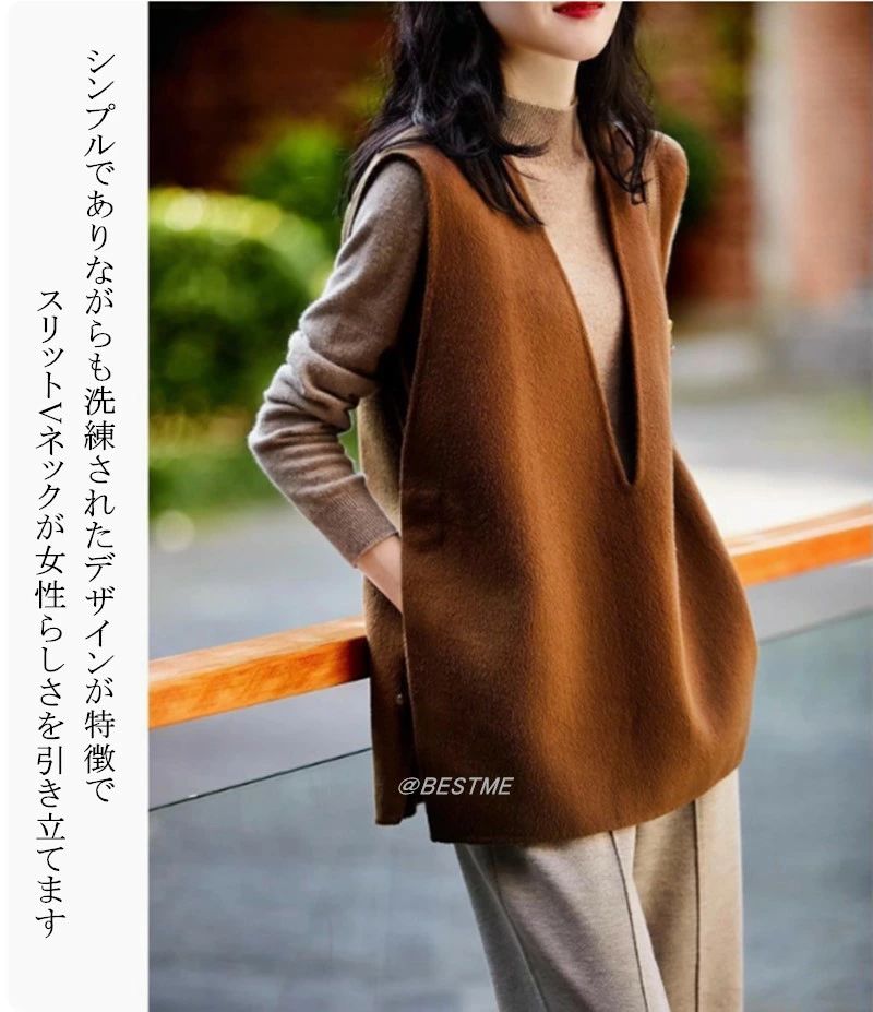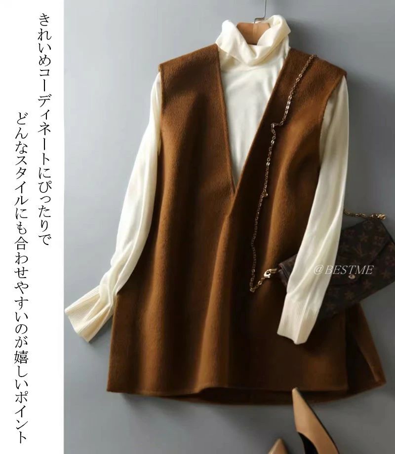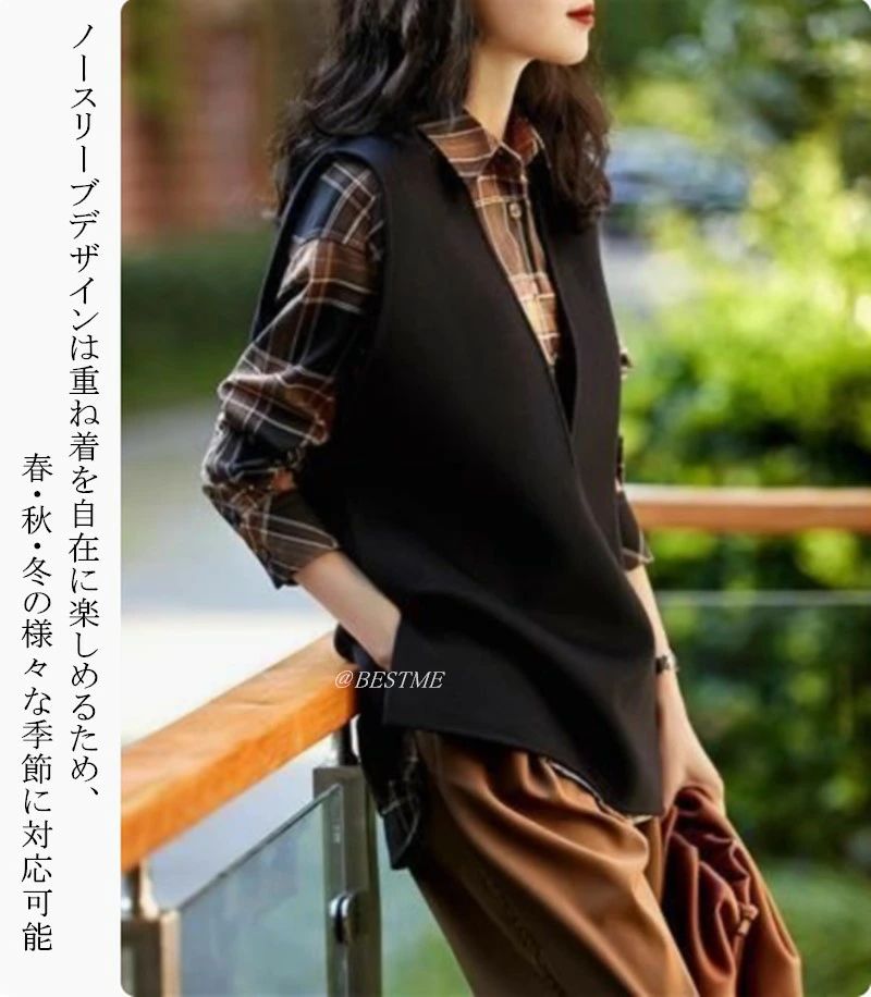 ベスト Vネック ジレベスト ロングベ レディースファッション 豊富な品揃え ブラウン ブラック M オススメ体重65キロまで L オススメ体重80キロまで