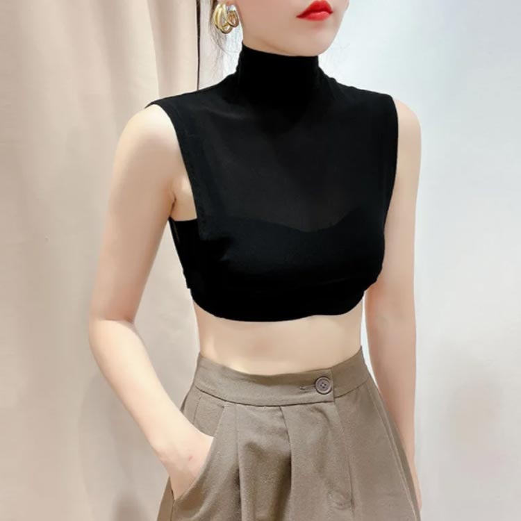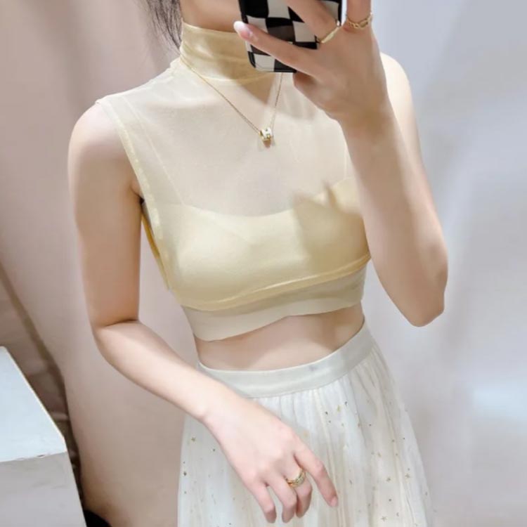 胸元を気にすることなく洋服を楽しめる 付け襟 つけ襟 レディース 春 つけえり 付け衿 シースルー 薄手 ハイネック 重ね着 カットソー インナー シアー タートルネック フェ ノースリーブ