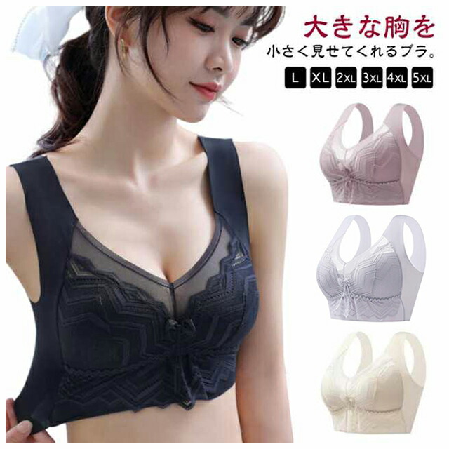 ブラジャー 胸を小さく見せるブラ 小さ インナー 下着 ナイトウエア 人気 ライトグリーン 肌色 パープル ピンク ブラック L XL 2XL 3XL 4XL 5XL