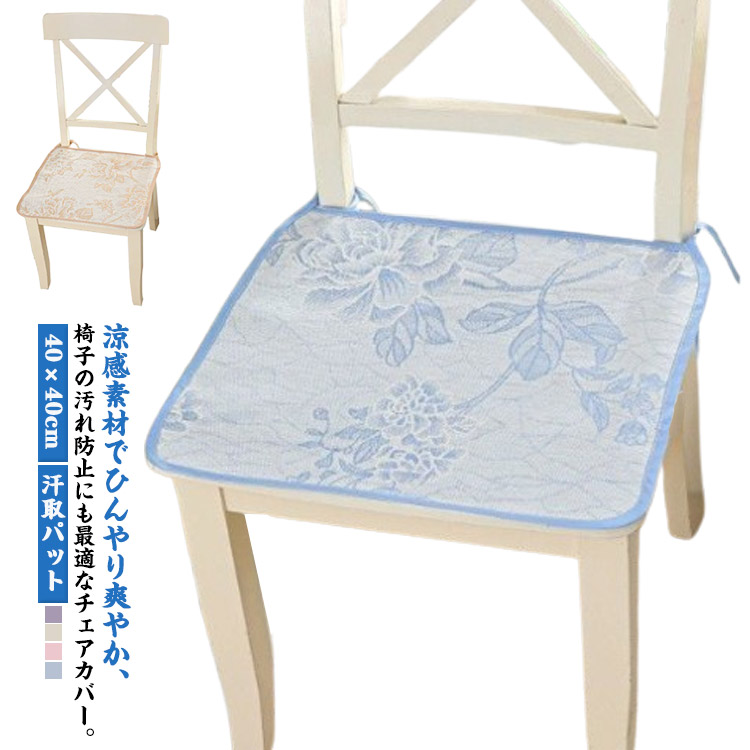 汗取パット 角型 夏用 40×40cm パッド シートクッション 座ぶとん チェア 低反発 椅子用 滑り止め チェアークッション いす用 ひも付き 座面 クッション 冷感 チェアパッド クー 暑さ対策