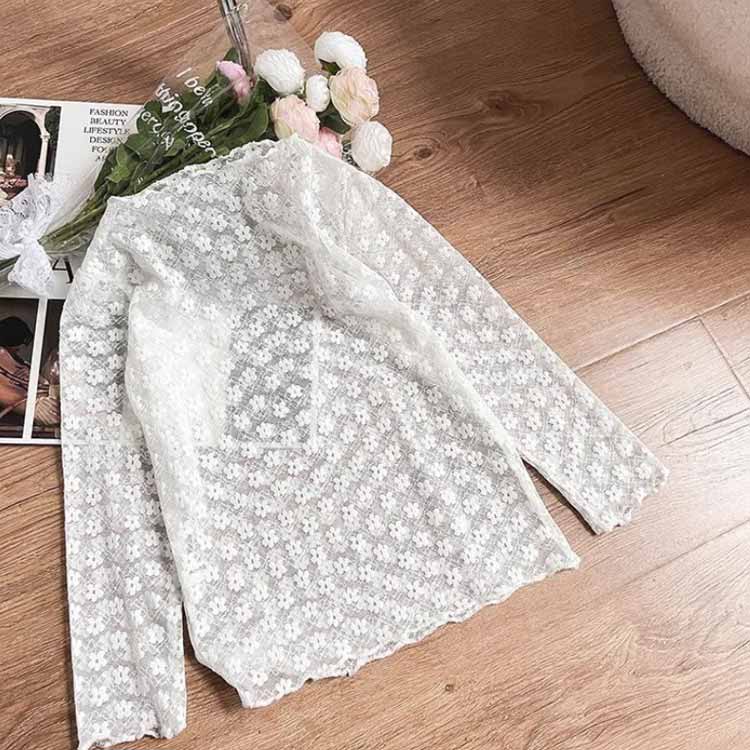 透け感 トップス 女の子 キッズ チュール シースルー インナー 春夏 UVカット 長袖 日焼け止め 花柄 ブラウス ハイネック レイヤード カットソー シアートップス おしゃ レース