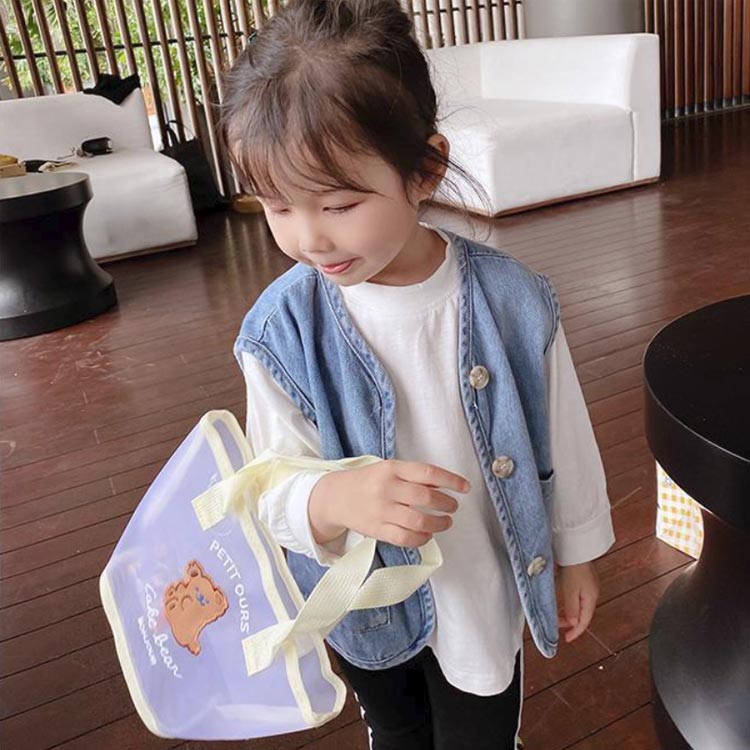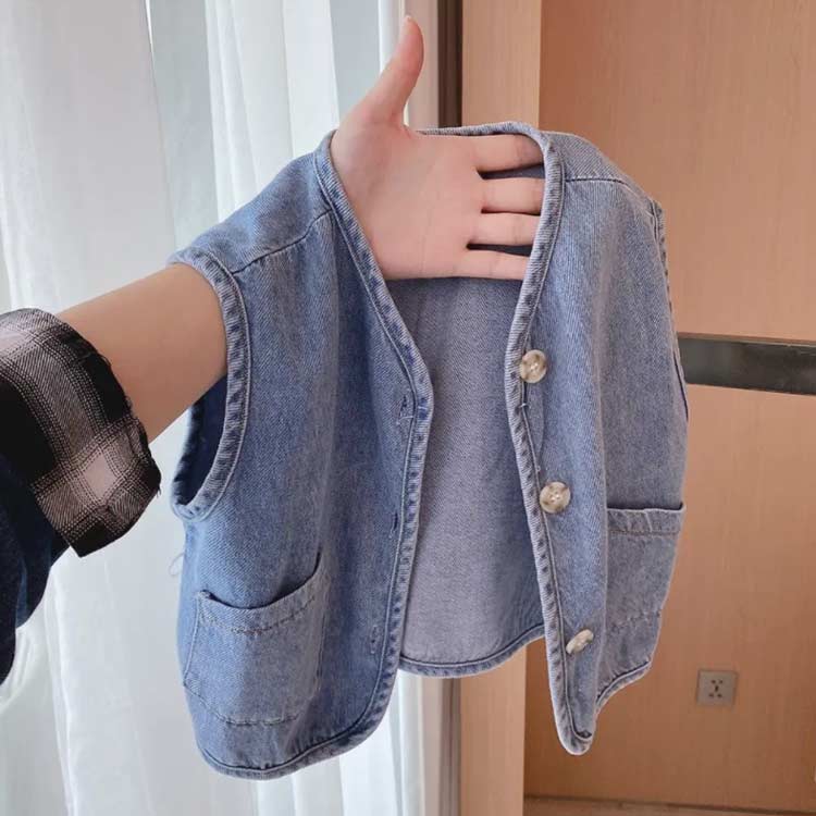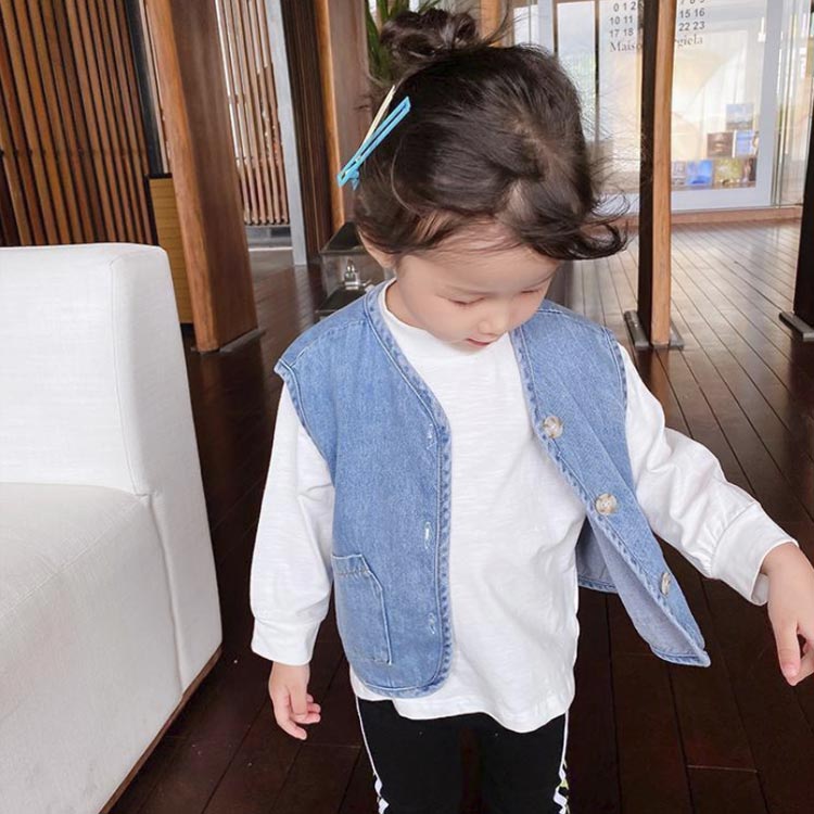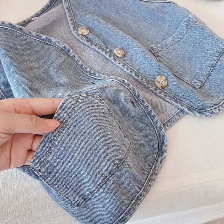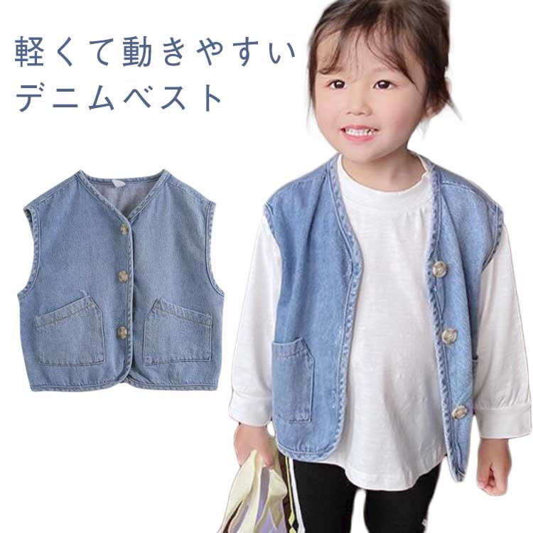 デニムベスト チョッキ 前開き アウター ジャケット キッズ 袖なし ベスト 子供服 ノースリーブ トップス デニム ガールズ 薄手 ベビー 春夏秋 通園 通学 ゆったり
