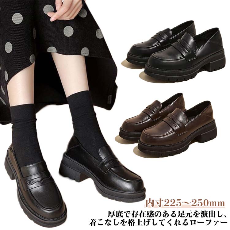ローファー 厚底ローファー レディース 靴 早い者勝ち ブラック ブラウン 35(内寸225mm) 36(内寸230mm) 37(内寸235mm) 38(内寸240mm) 39(内寸245mm) 40(内寸250mm)