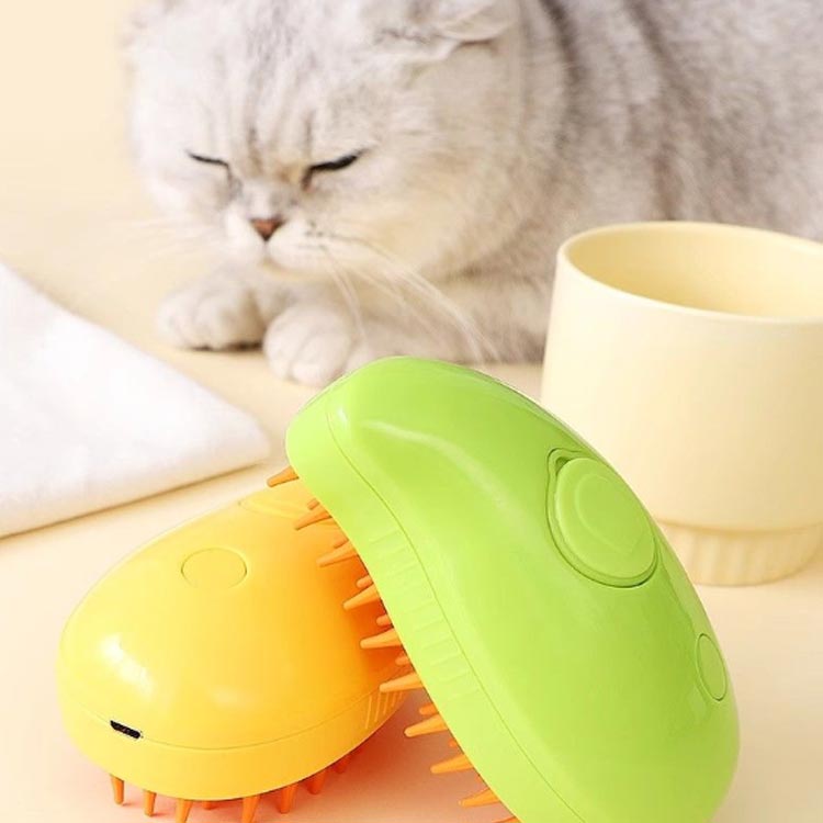 蒸気ペットブラシ 噴霧 長毛 猫スリッ イエロー グリーン