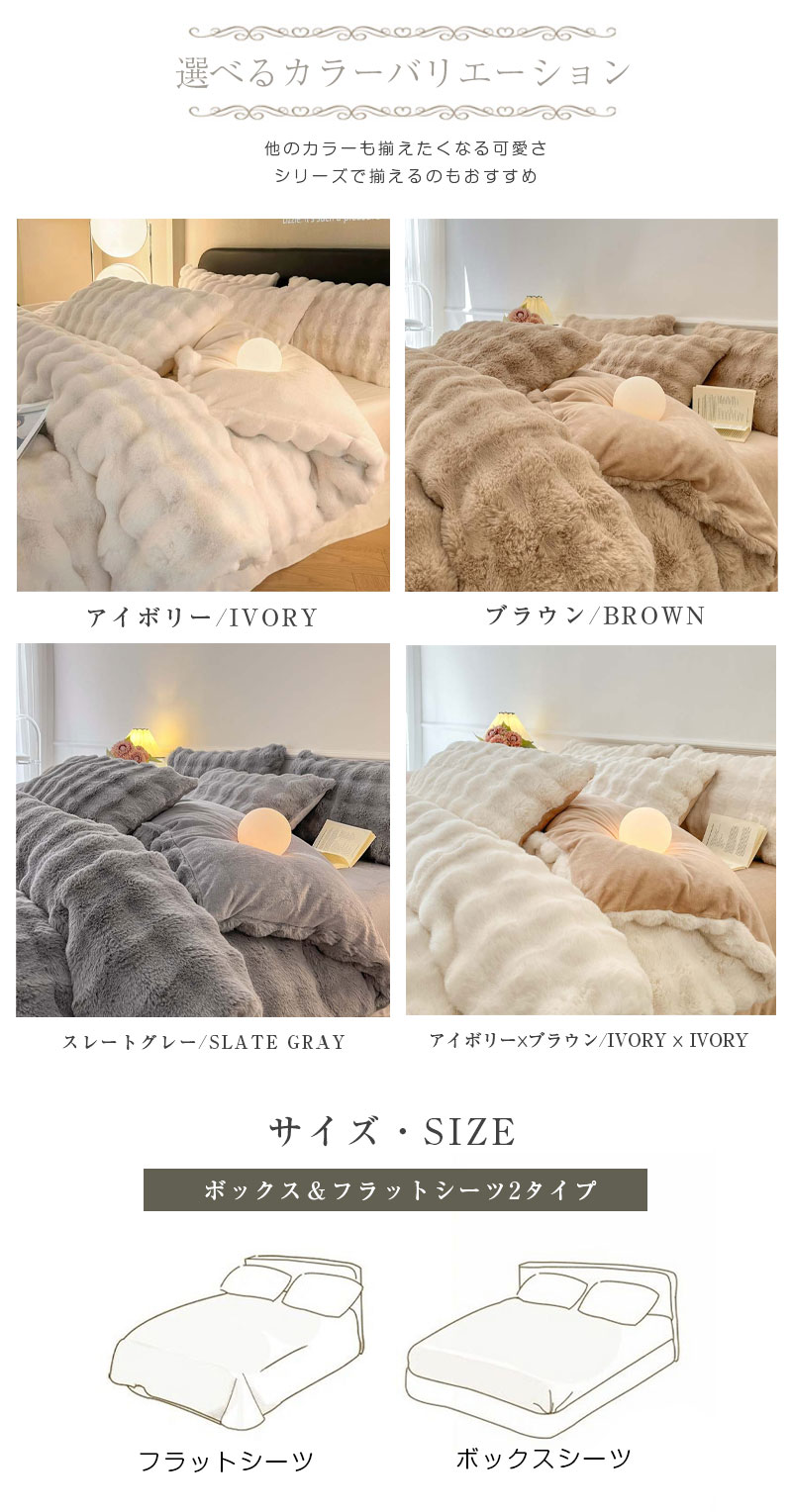 布団カバーセット シングル あったか インテリア 寝具 収納 通販 アイボリー ブラウン スレートグレー アイボリーxブラウン フラットシーツタイプ ボックスシーツタイプ