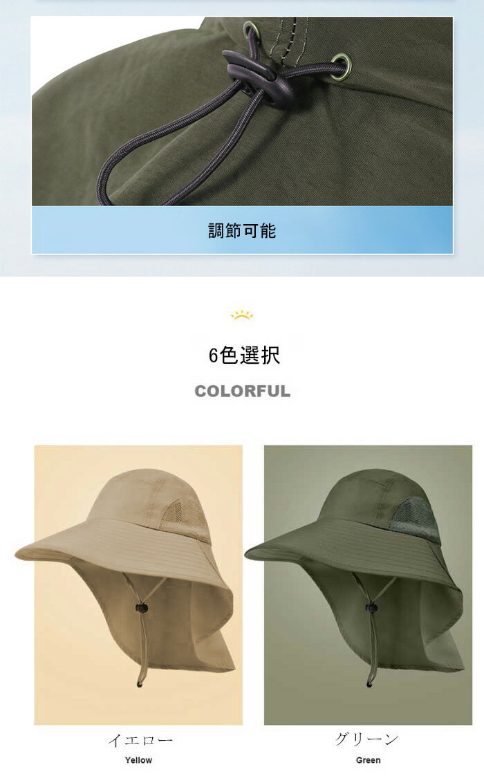 日焼け防止 帽子 サンバイザー レディース 大きいサイズ UV つば広 メンズ 調節可能 春 夏 首筋カバー ユニセックス UVカット 農作業ネック 紫外線対策ハット 日よけ帽
