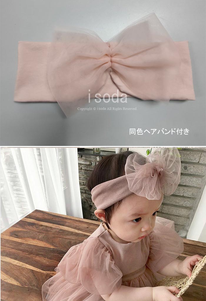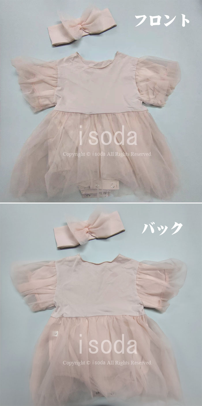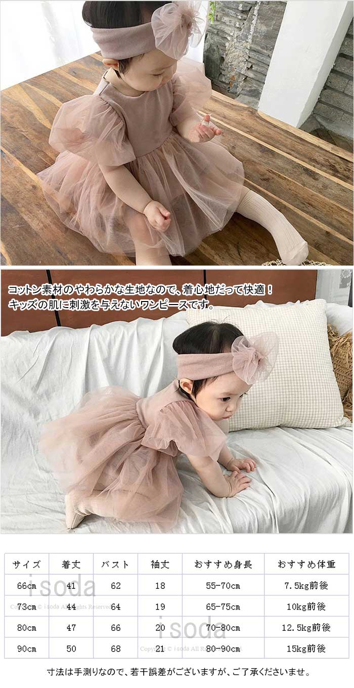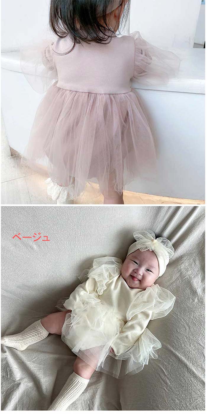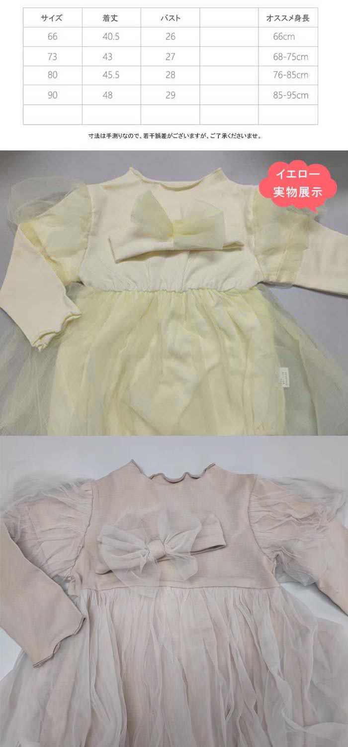 ベビー ワンピース ロンパース ベビードレス 女の子 半袖 長袖 チュール ヘアバンド付き ベビー服 秋 白 セレモニードレス 新生児 フォーマル
