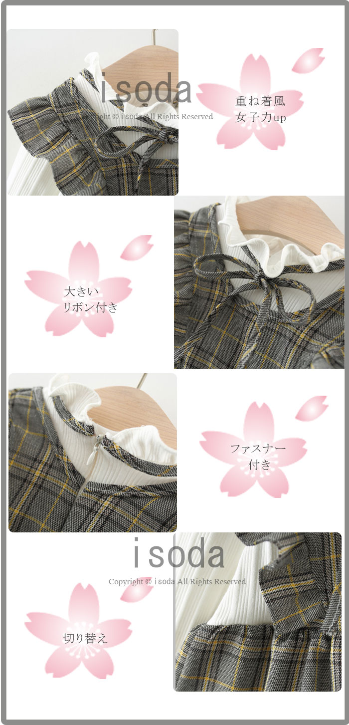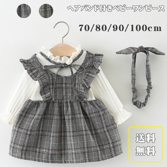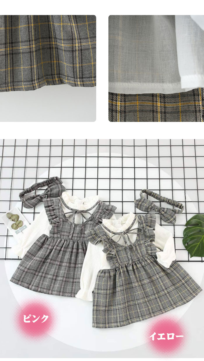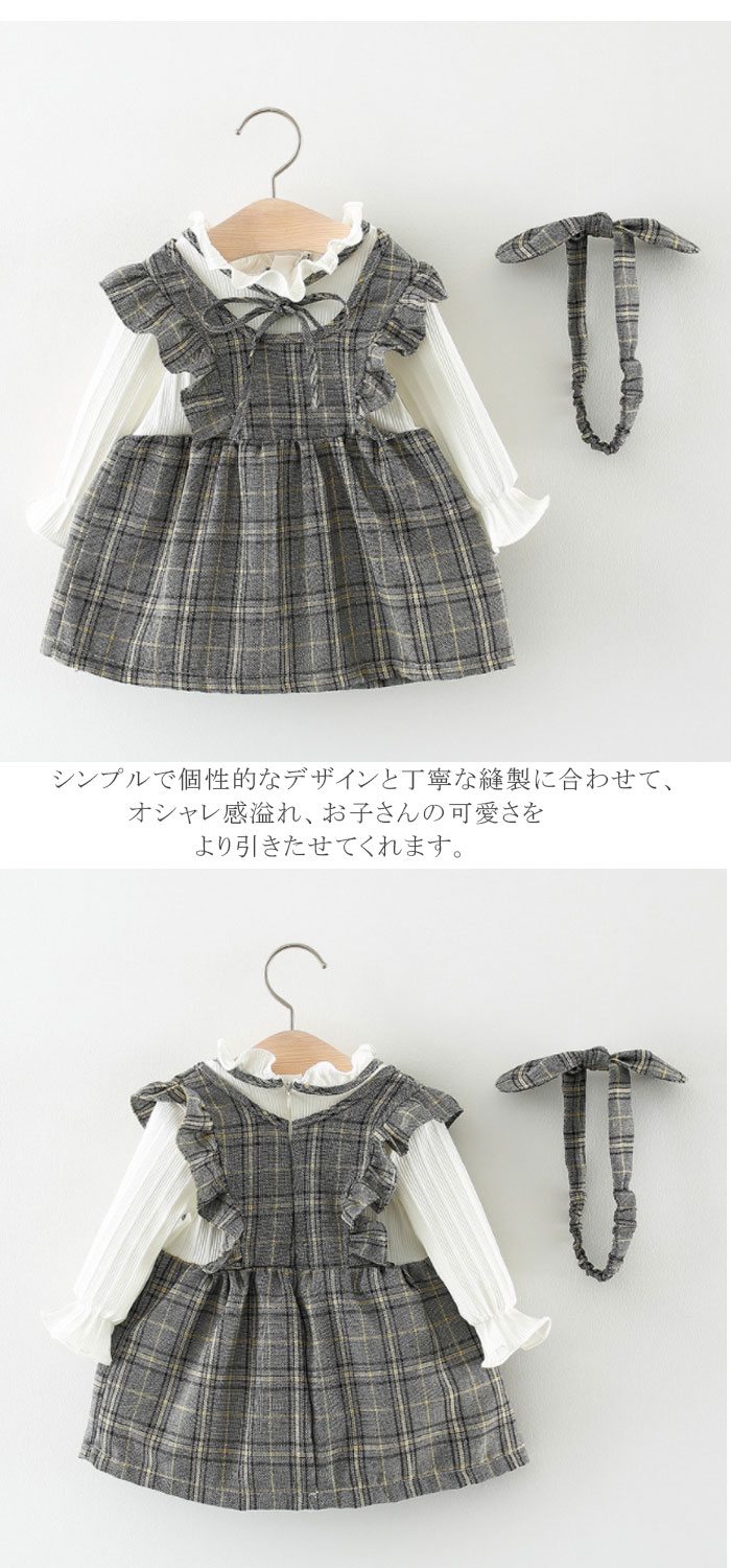 ベビー ワンピース キッズ ワンピ ベビーワンピ キッズワンピ チェック 子供服 ベビー服 子ども 女の子 おしゃれ 可愛い かわいい 重ね着風 卒園式 入園式 70 フォーマル