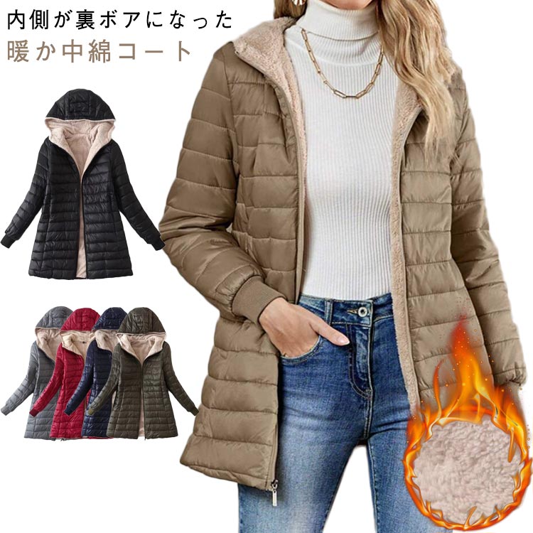 裏ボアコート レディース 中綿コート コート ジャケット 豊富な品揃え グレー ブラック ワインレッド ネイビー アーミーグリーン カーキー S M L XL 2XL 3XL