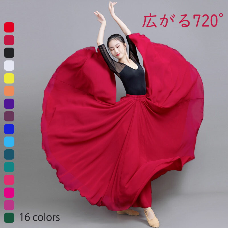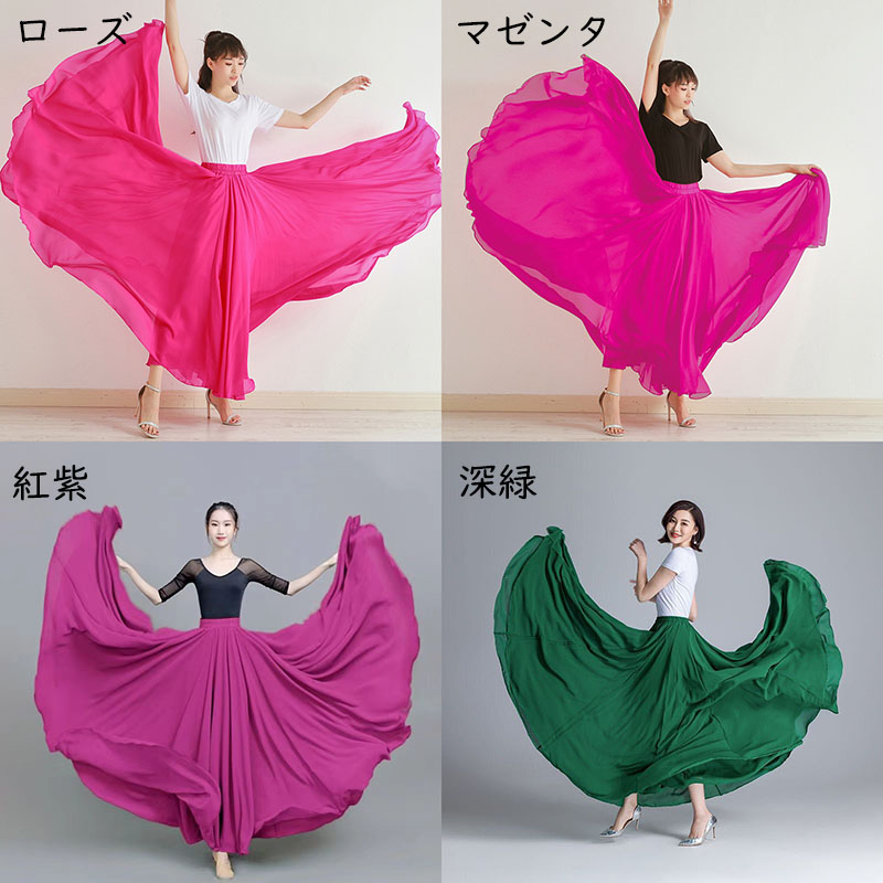 二層 エレガント チャチャ ステージ衣 体操 ダンス フラメンコ スカート 続々入荷中 レッド ワインレッド ブラック ホワイト 瑠璃紺 天色 グリーン イエロー オレンジ パープル プラム ローズ マゼンタ 紅紫 深緑 80cm 85cm 90cm 95cm 100cm