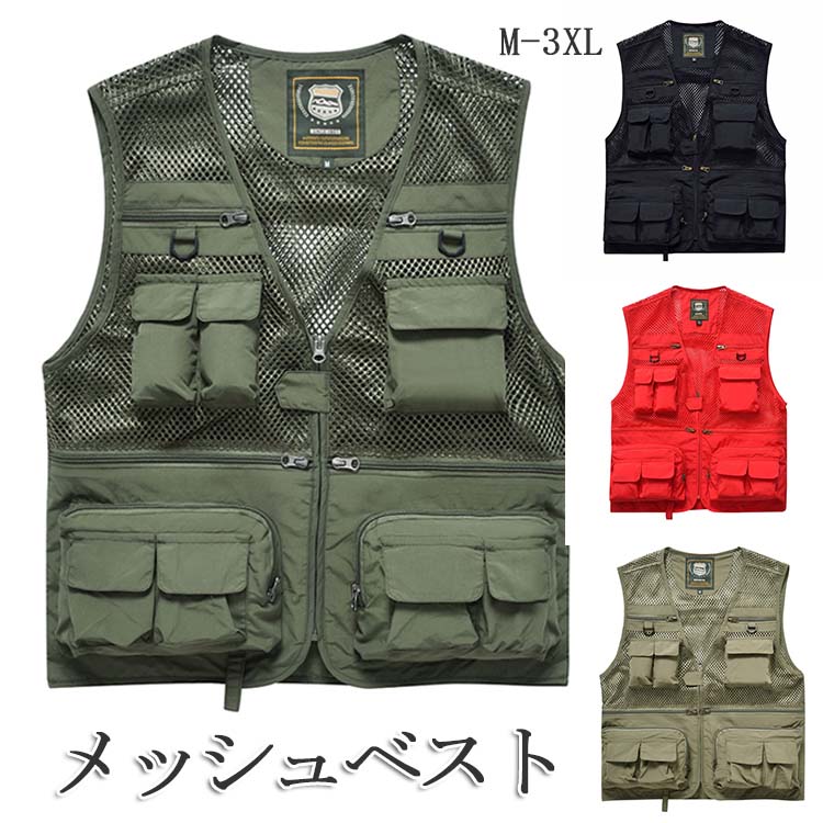 メッシュベスト 超通気アウトドアベスト アウトドア ウェア メンズウェア ベスト 新作 グリーン カーキ レッド ブラック M L XL 2XL 3XL 4XL 5XL