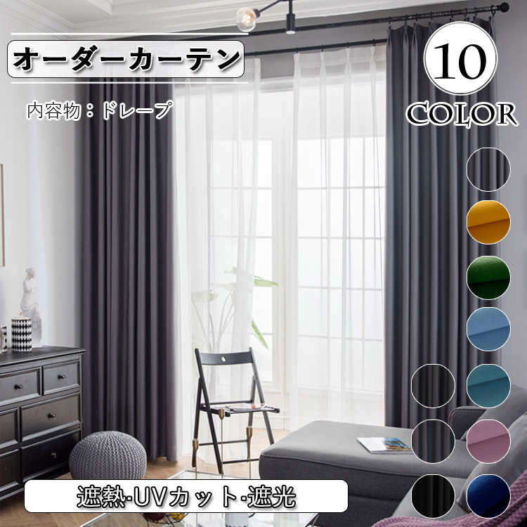 遮光カーテン 1級 2級 おしゃれ UVカット 紫外線カット オーダー グレー ブラウン ブラック ネイビー ピンク グリーン ブルー 水色 イエロー 出窓 リビング 新居 エレガント ベッドルーム