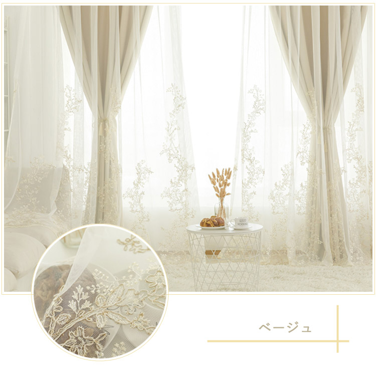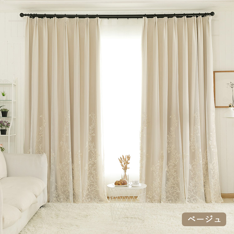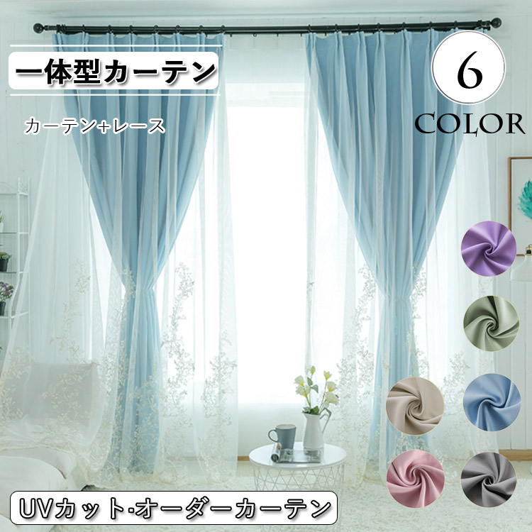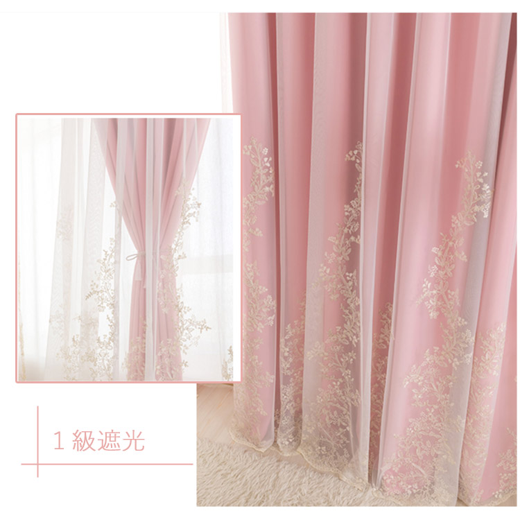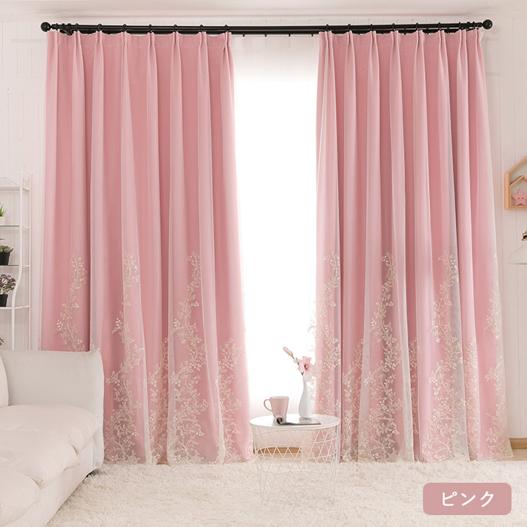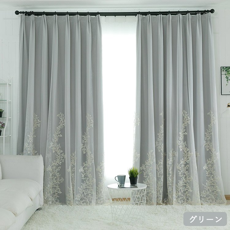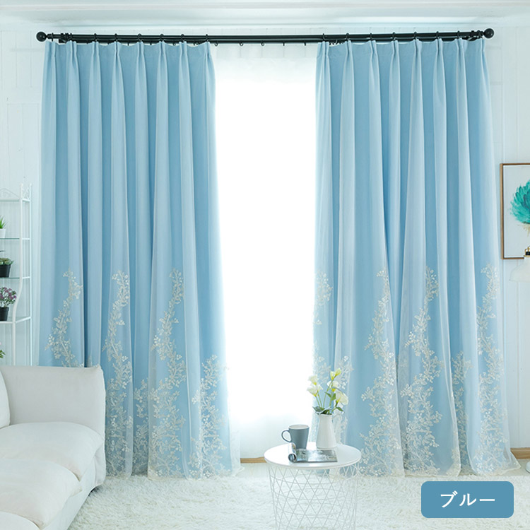カーテン 遮光 オーダー 花柄 刺繍 一体型 レース 北欧 おしゃれ グレー ベージュ ピンク ブルー グリーン パープル ポリエステル UVカット 出窓 お姫様 ベッドルーム リビ シンプル