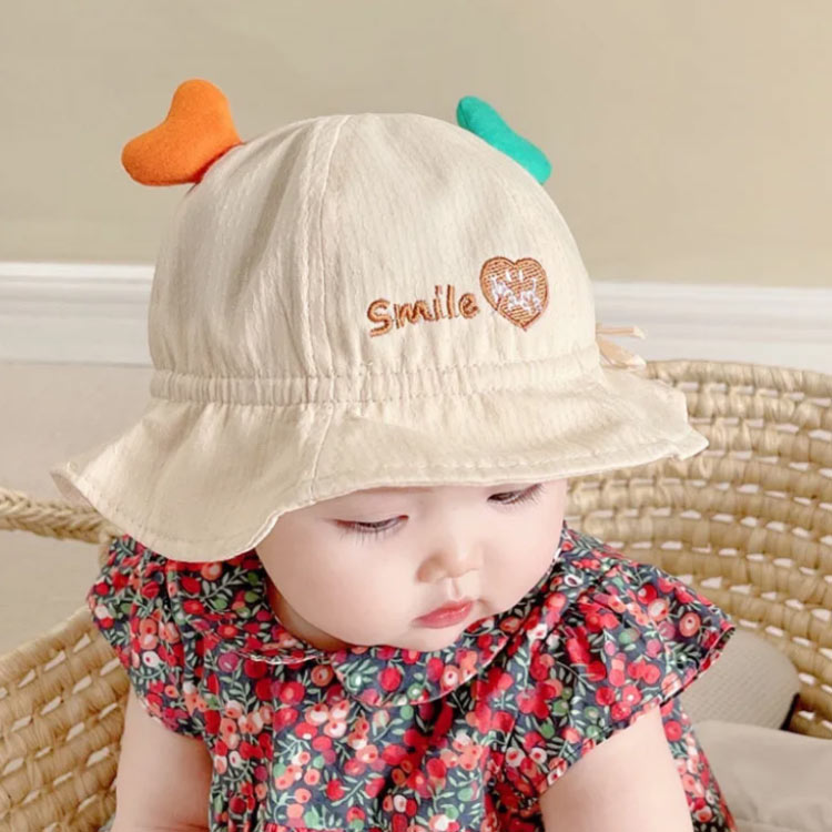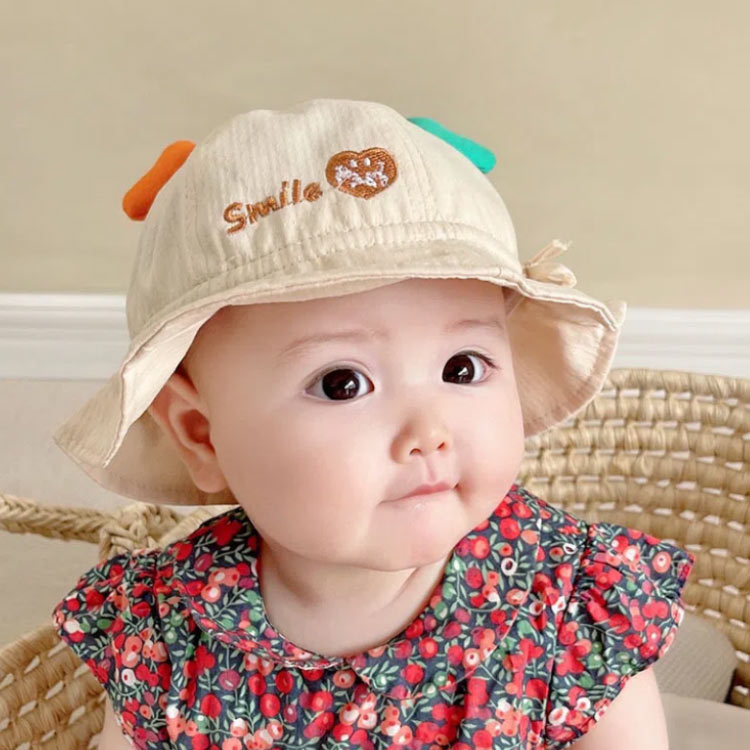 お耳付きの可愛い春夏シーズンのベビー用帽子です。