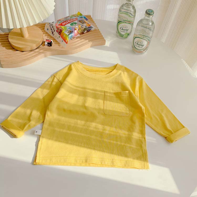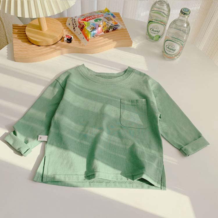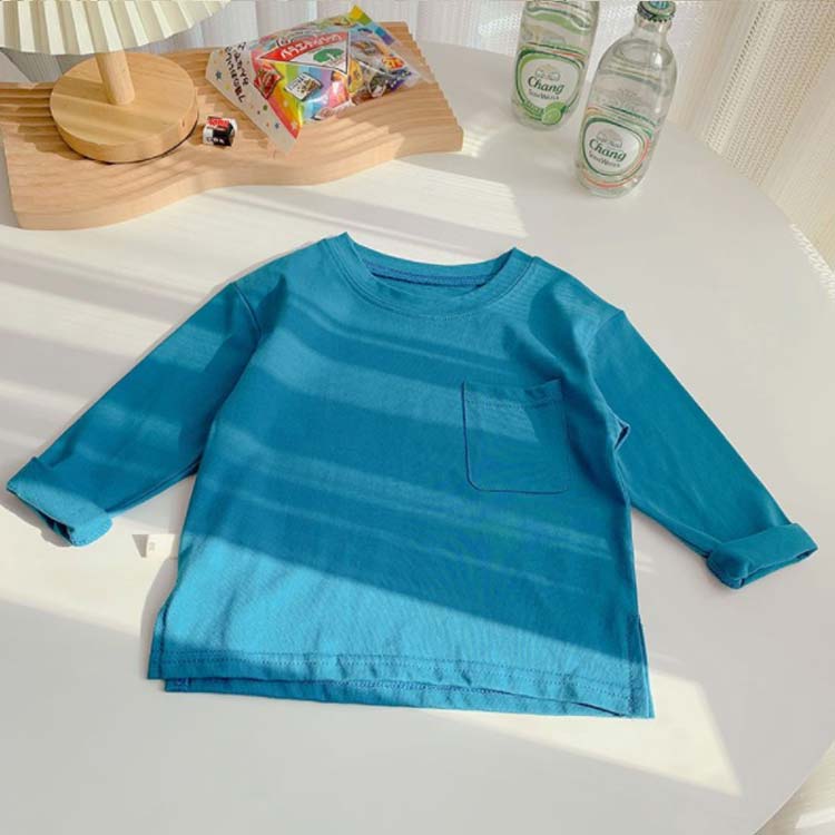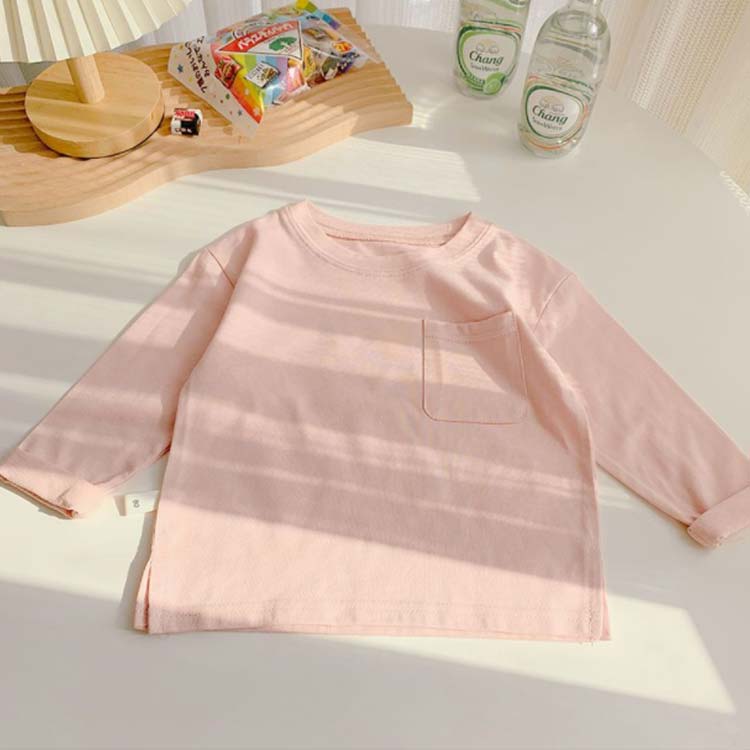 子供服 Tシャツ 長袖 ロンT キッズ 男の子 女の子 ポケット付 長そで 長袖tシャツ 無地 春 秋 薄手 綿 コットン カットソー インナー スウェット クルーネック 入園 入学 トップス 通園
