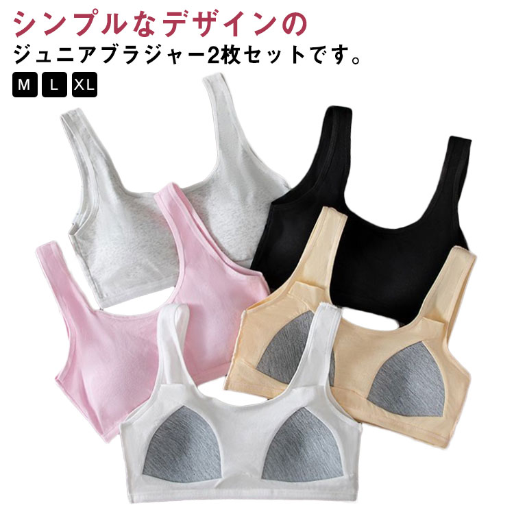 ジュニアブラ キッズブラ ブラジャー 2枚セット 下着 スポーツブラジャー 単品 子供用 小学生 高学年 中学生 インナー ノンワイヤー カジュアル 女の子 こども用 シンプル 無地 女子