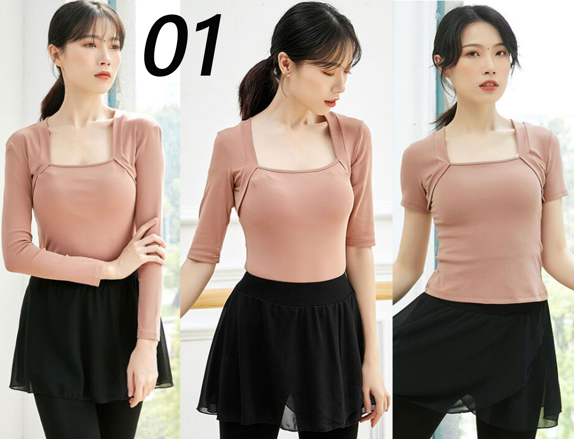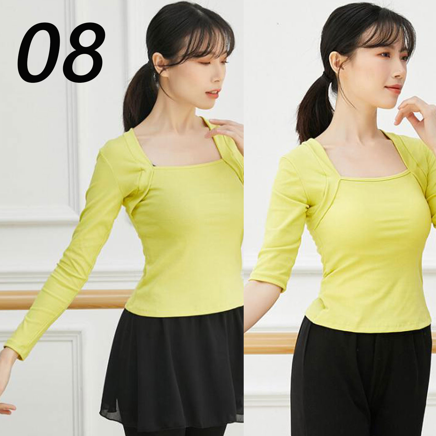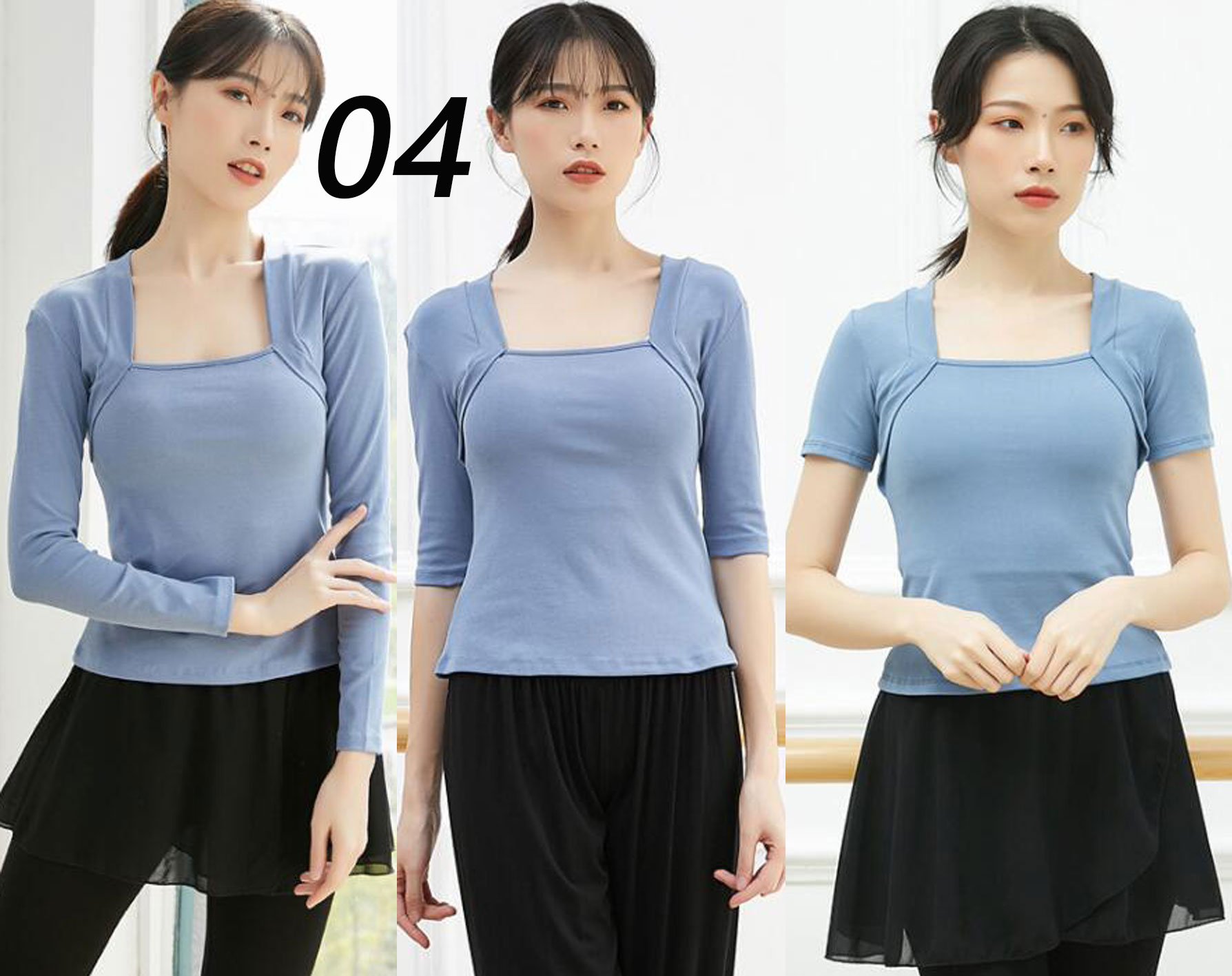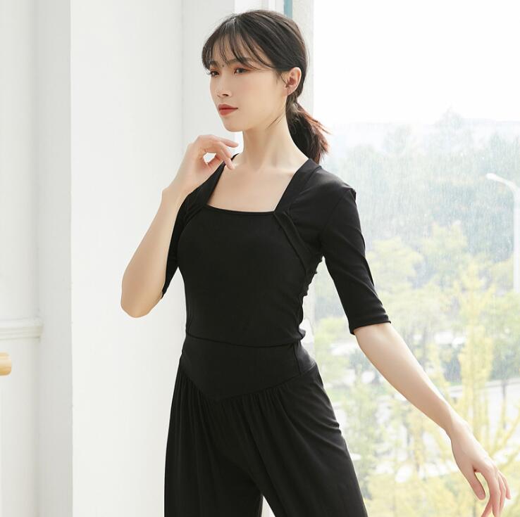 ダンスTシャツ レディースヨガウェア フィットネスウェア 長袖 五分袖 半袖 スクエアネック ダンスウェア ダンス稽古 レッスン着 細見え 練習着 ヨガ服 お家ヨガ エクササイズ 古典 リラックスヨガ