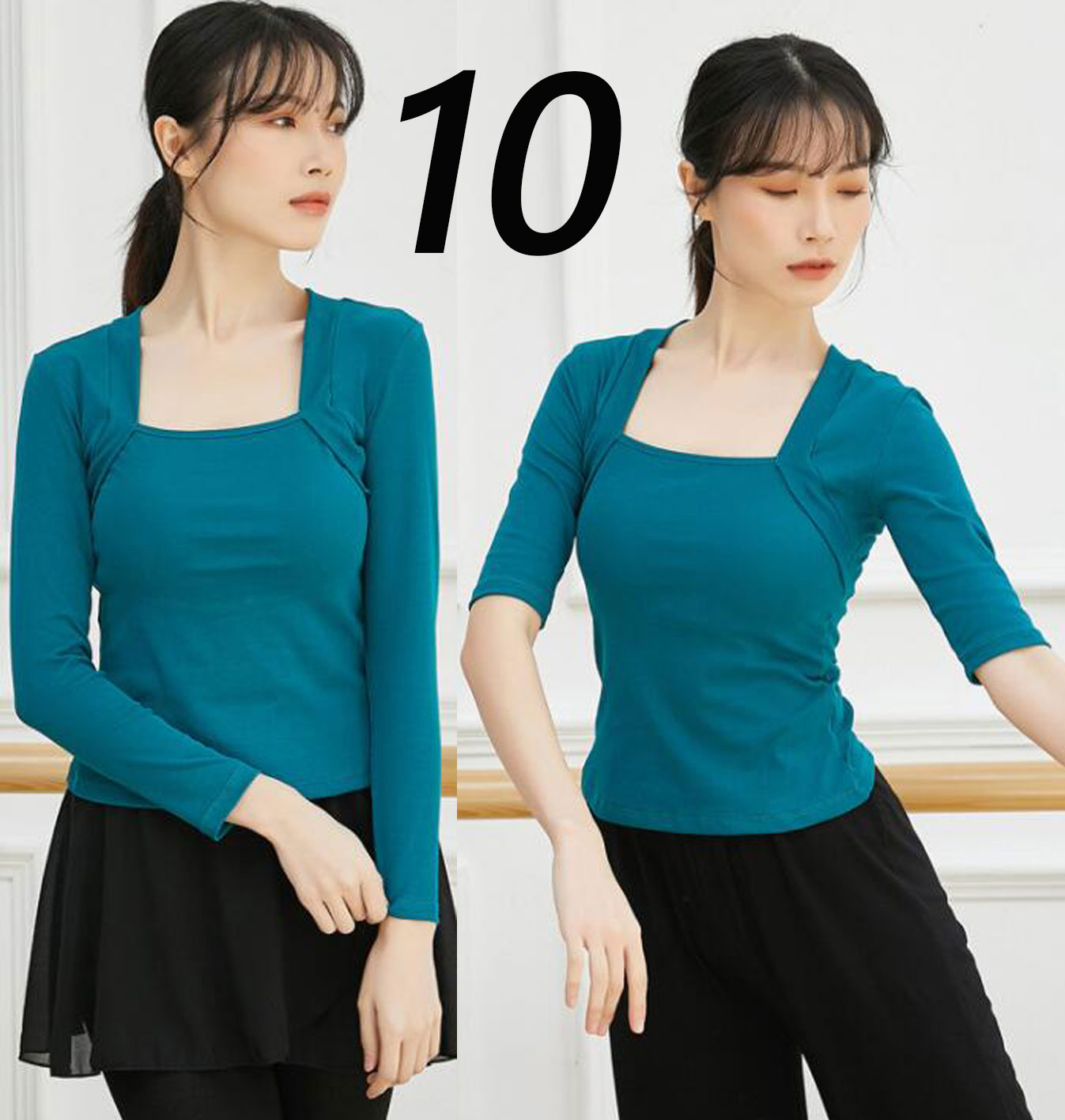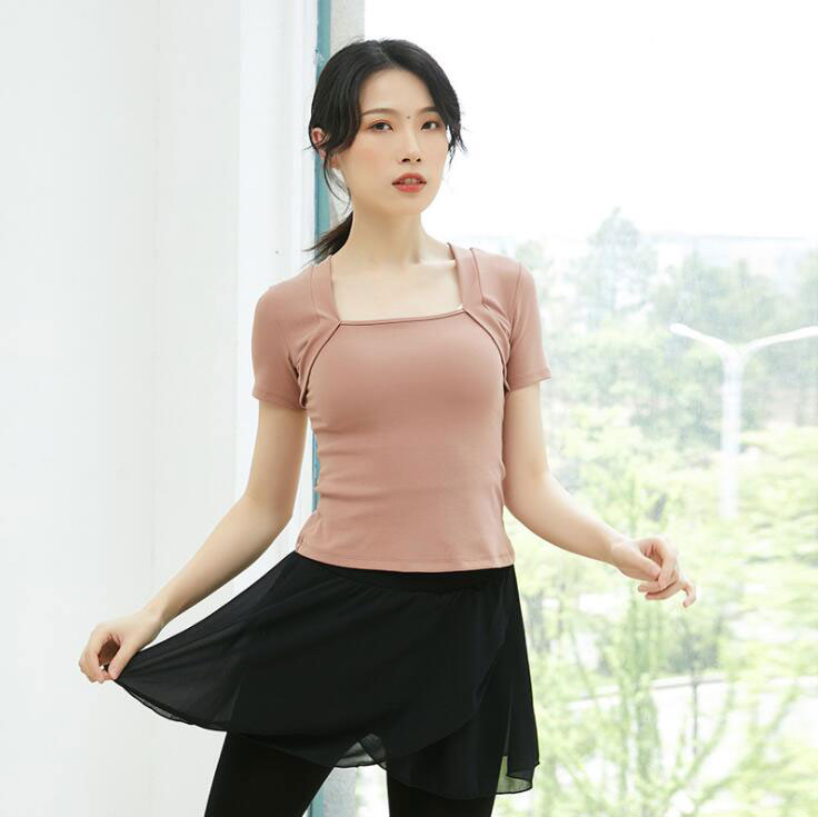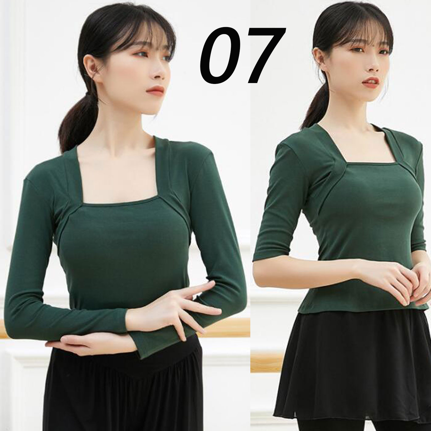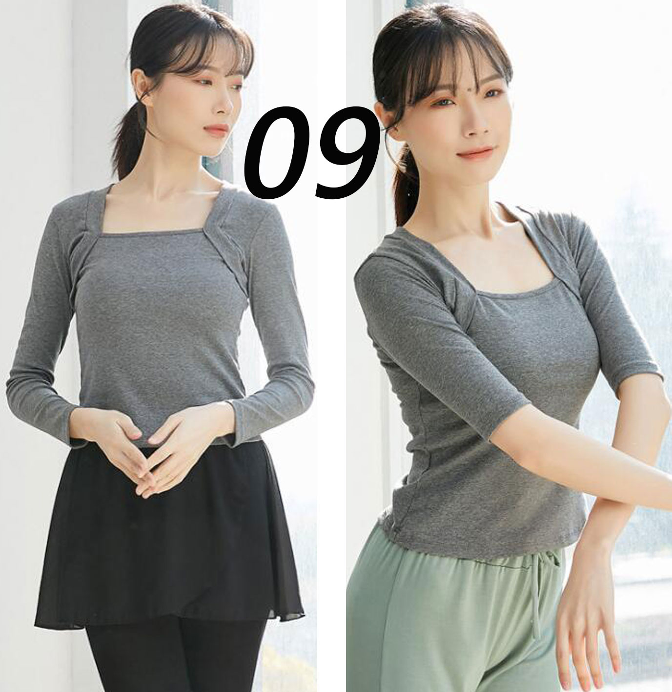 ダンスTシャツ レディースヨガウェア フィットネスウェア 長袖 五分袖 半袖 スクエアネック ダンスウェア ダンス稽古 レッスン着 細見え 練習着 ヨガ服 お家ヨガ エクササイズ 古典 リラックスヨガ
