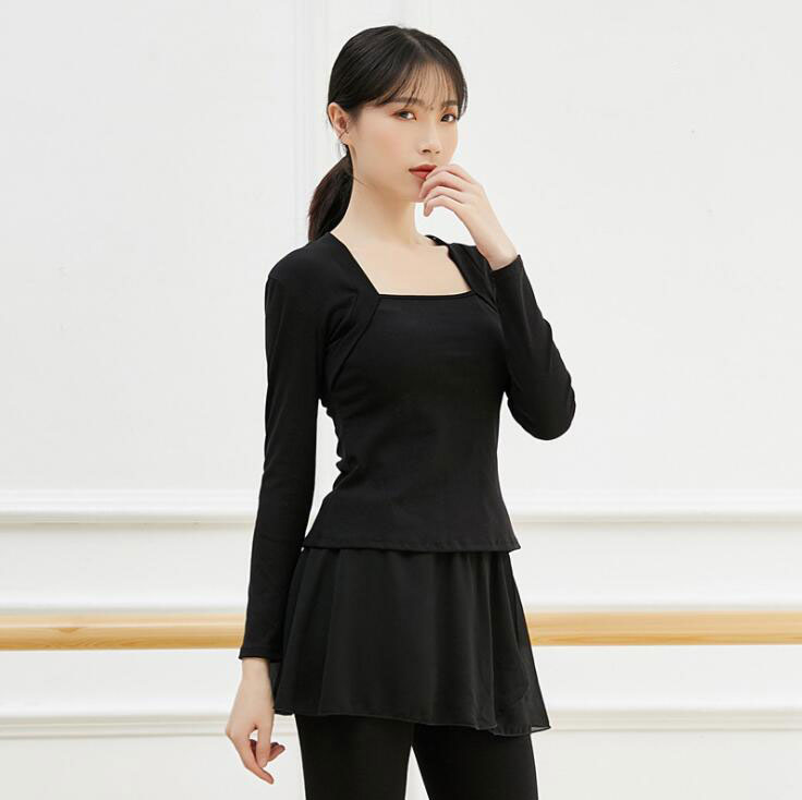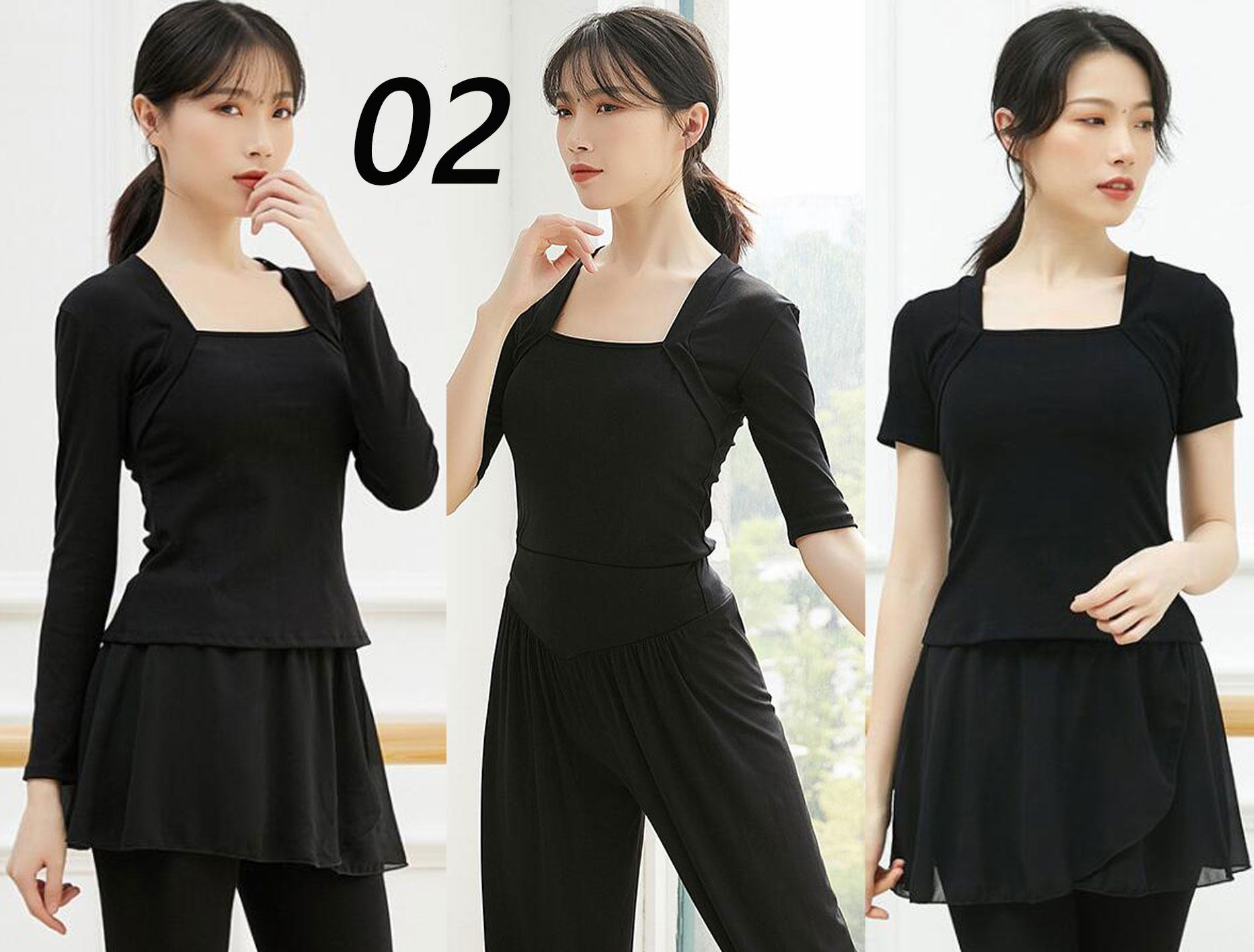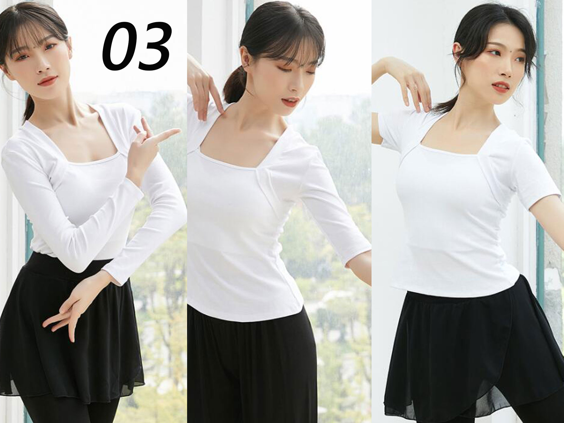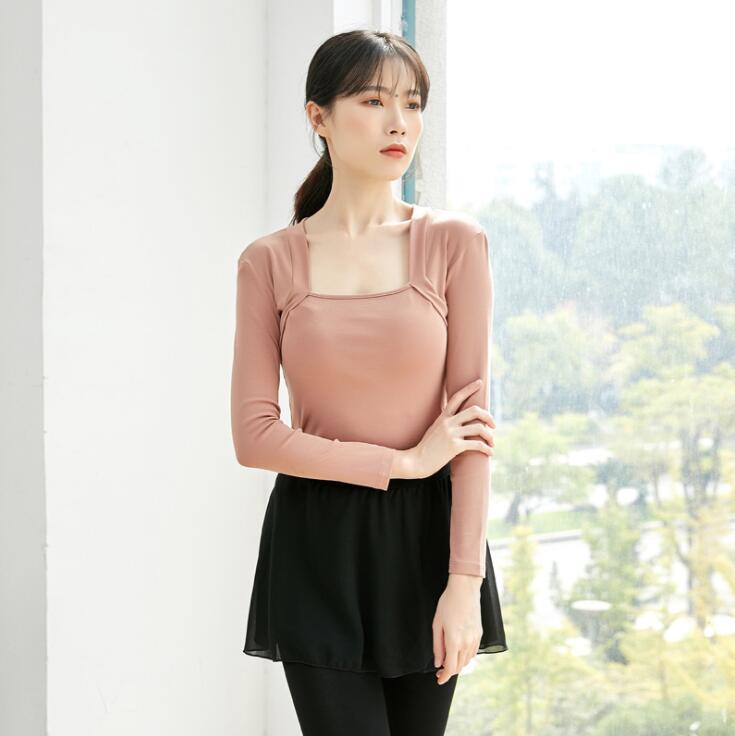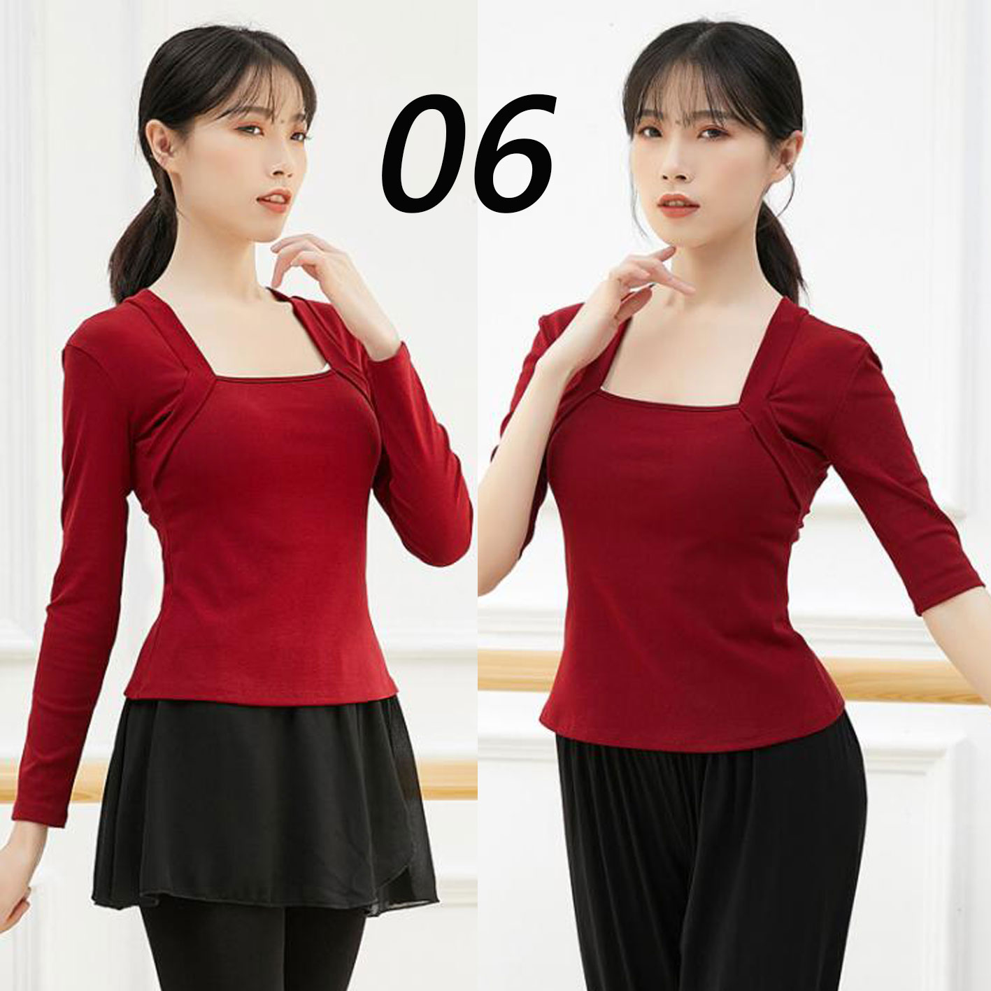 ダンスTシャツ レディースヨガウェア フィットネスウェア 長袖 五分袖 半袖 スクエアネック ダンスウェア ダンス稽古 レッスン着 細見え 練習着 ヨガ服 お家ヨガ エクササイズ 古典 リラックスヨガ