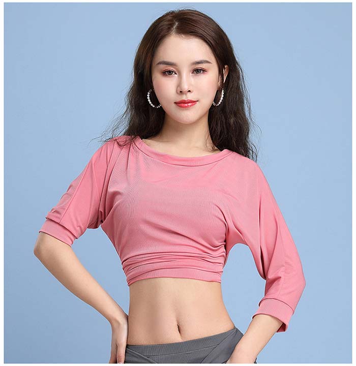 ベリーダンス衣装 トップス ドルマン ベリーダンス 衣装 レッスン着 練習着 ベリー衣装 無地 半袖 ヨガ ショット丈 ゆったり レッスンウェア ダンスウェア レデ ダンストップス