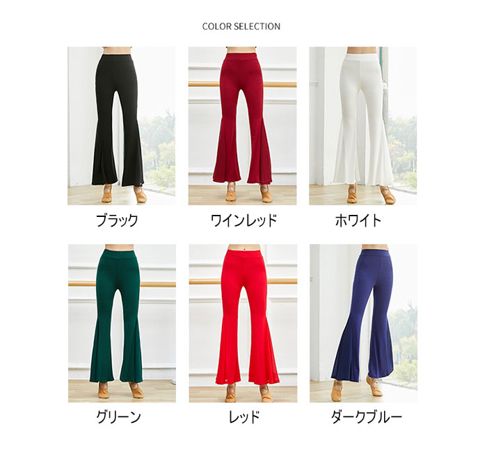 ダンスパンツ ストレッチ フレアパンツ ヨガ ピラティス ウェア パンツ 続々入荷中 ブラック ホワイト レッド ワインレッド ダークブルー グリーン ロイヤルブルー S M L XL 2XL 3XL