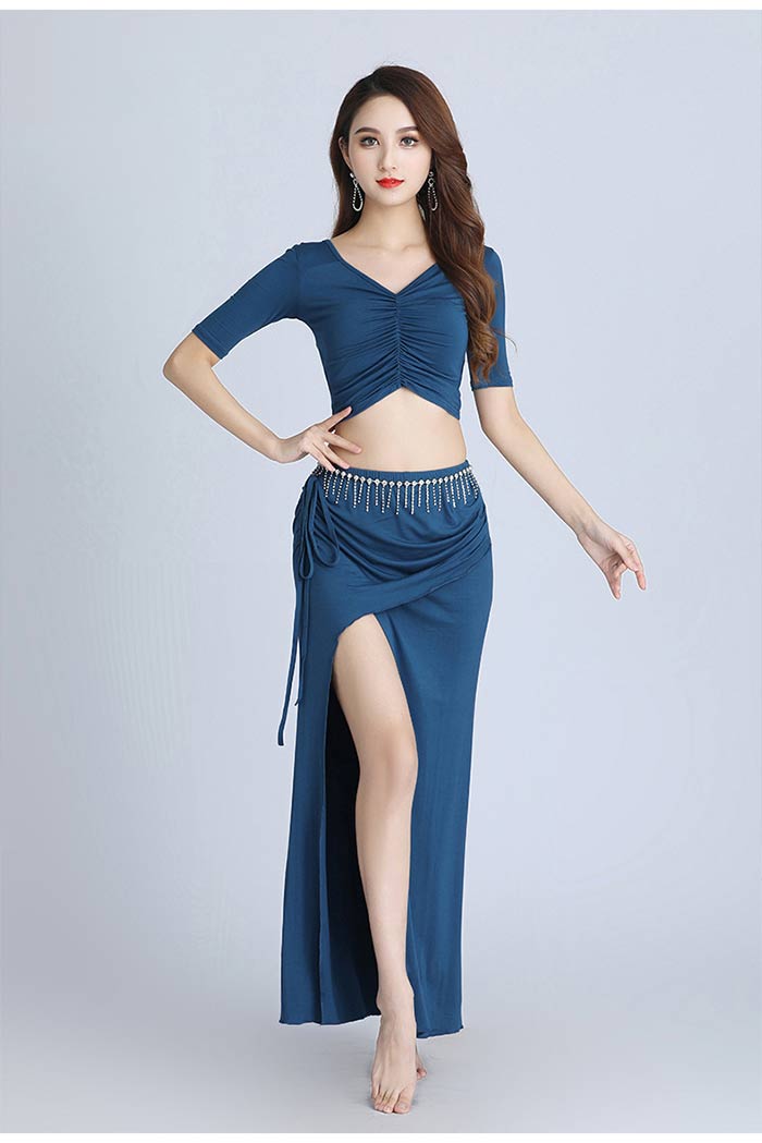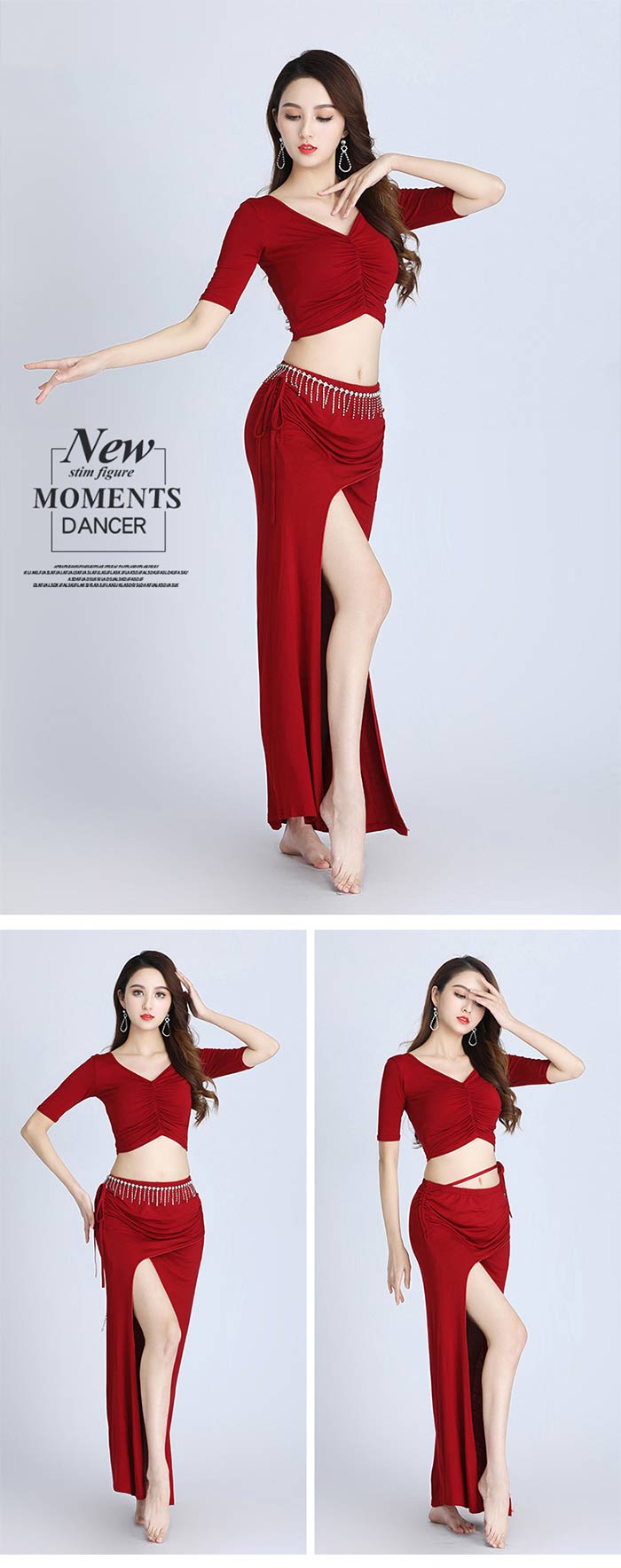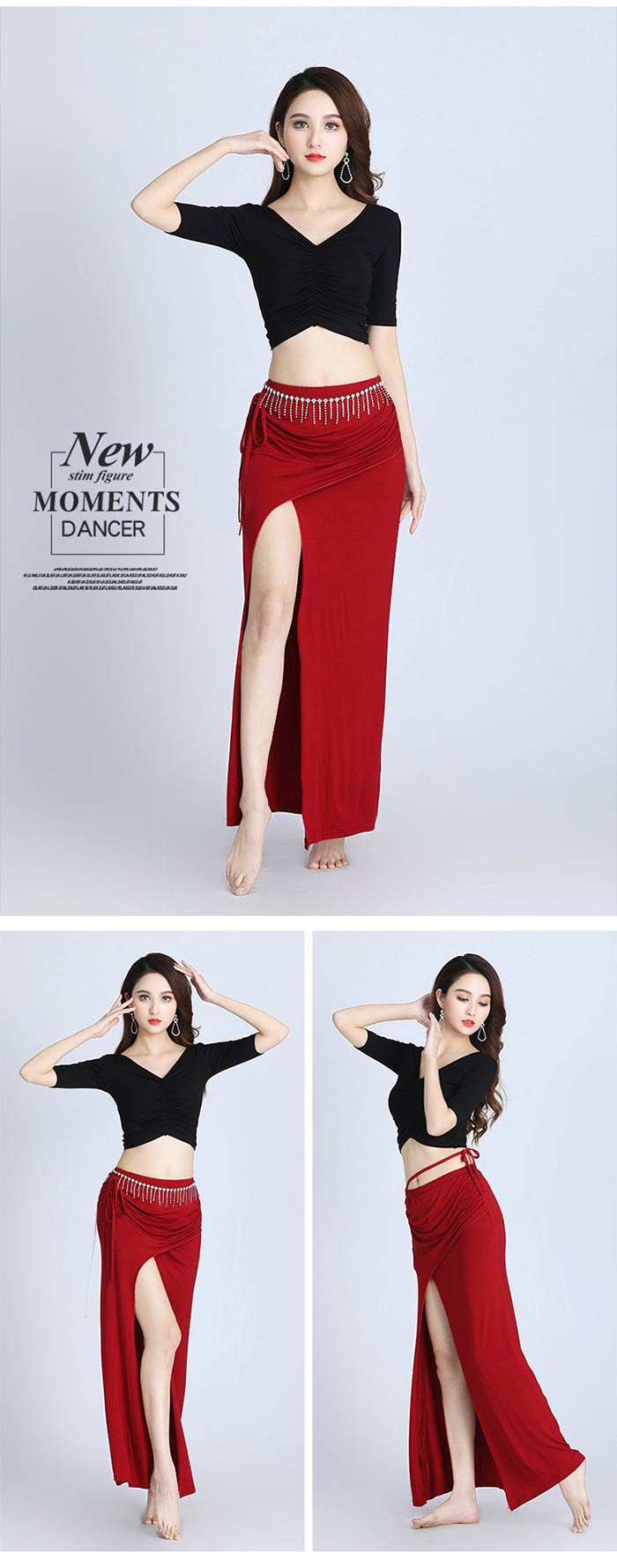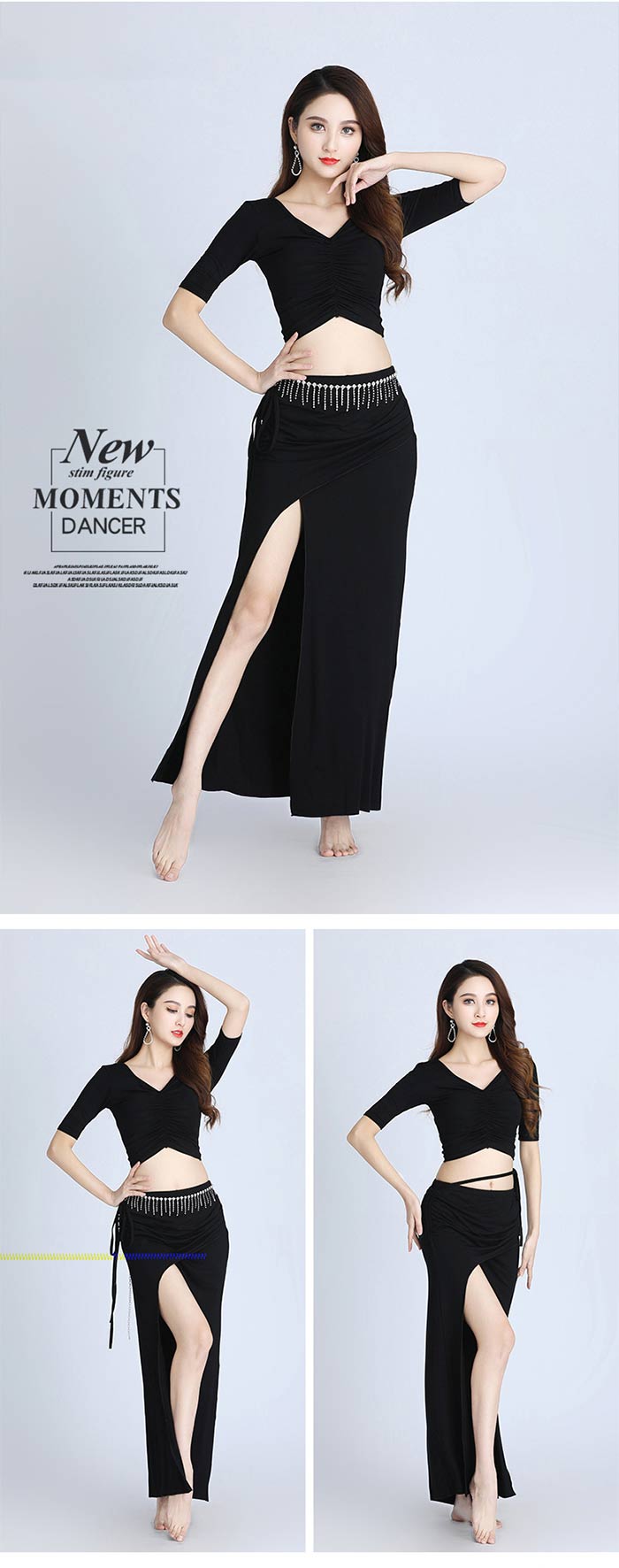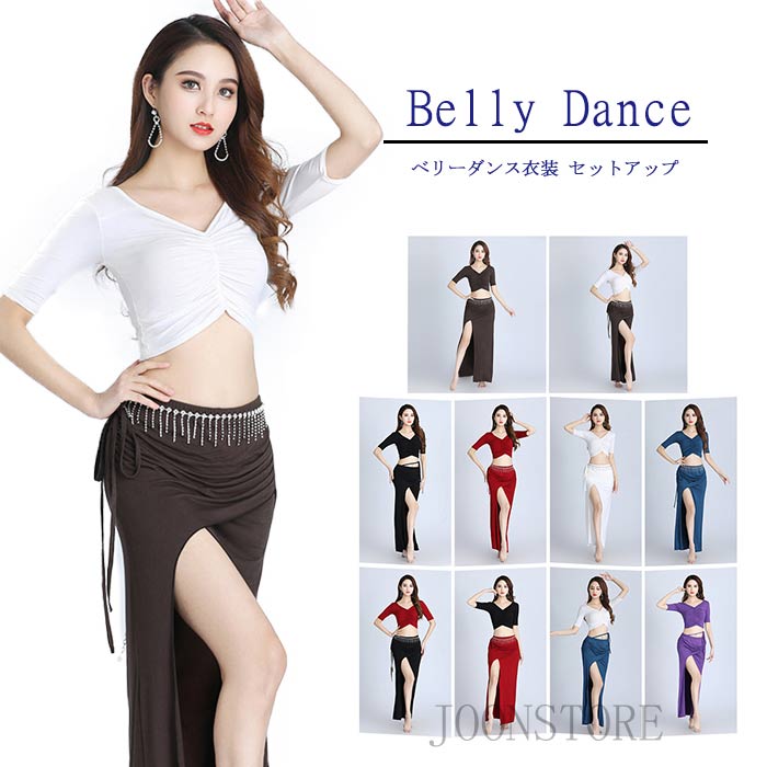 ベリーダンス レッスン着 練習着 衣装 セット 半袖 トップス レッスンウェア ロング丈 ヒップスカーフ スカート 上下セット ダンスウェア レディース ステージ衣装 ベリーダンス衣装