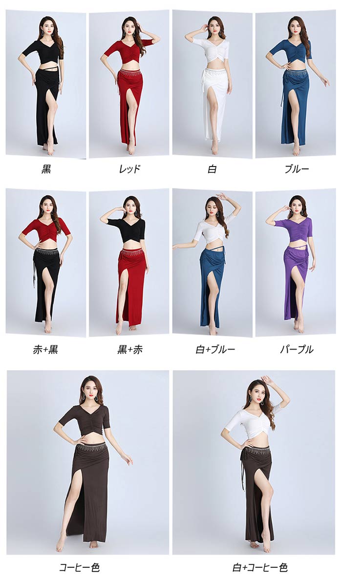 ベリーダンス レッスン着 練習着 衣装 スポーツ アウトドア 人気 S M L XL XXL XXXL 黒 レッド 白 ブルー 赤+黒 黒+赤 白+ブルー パープル コーヒー色 白+コーヒー色