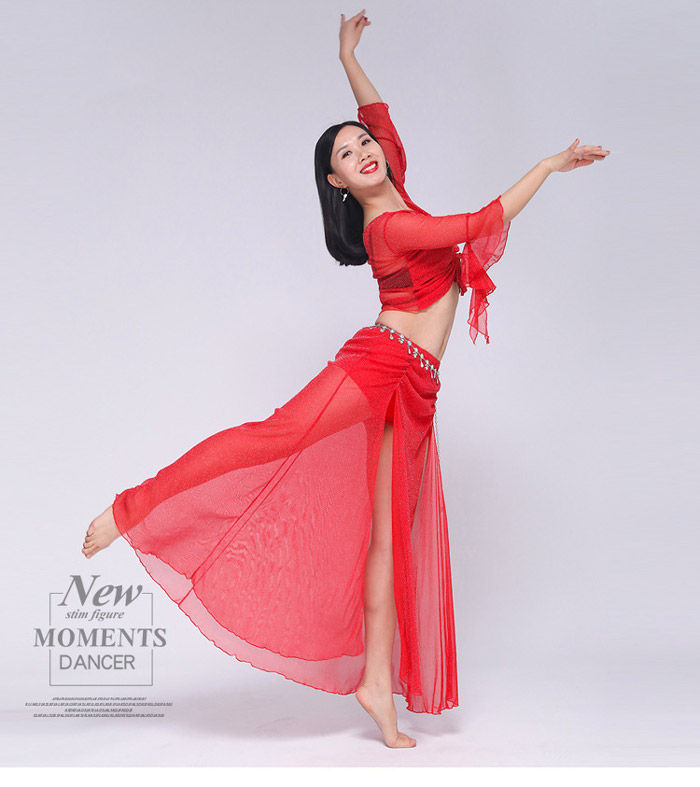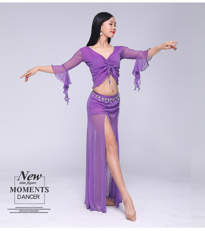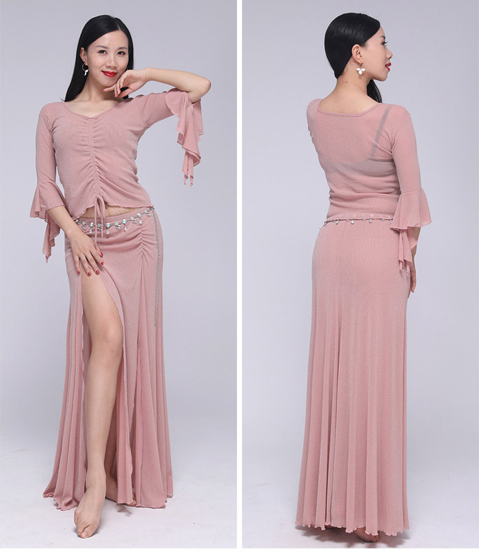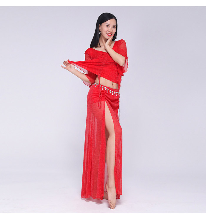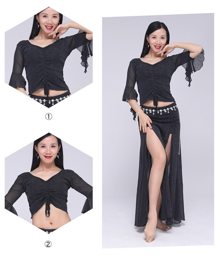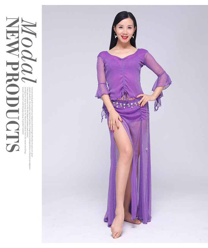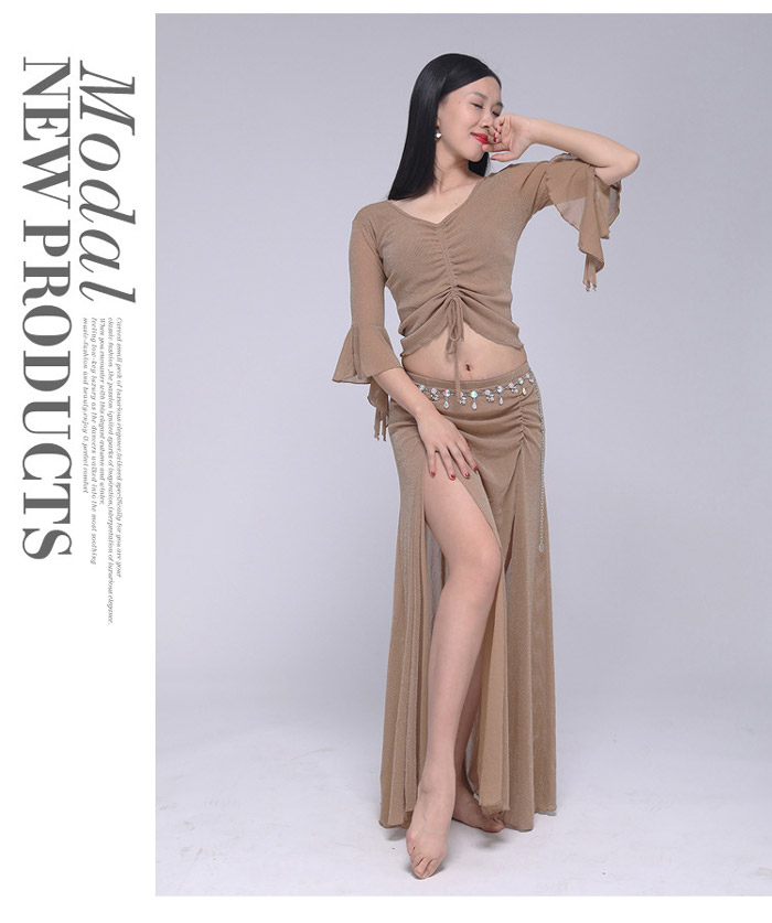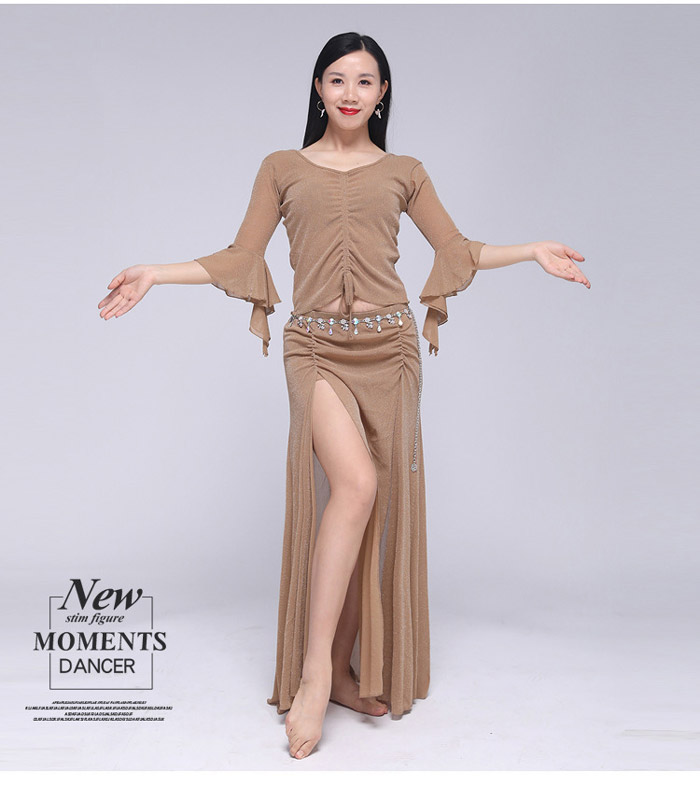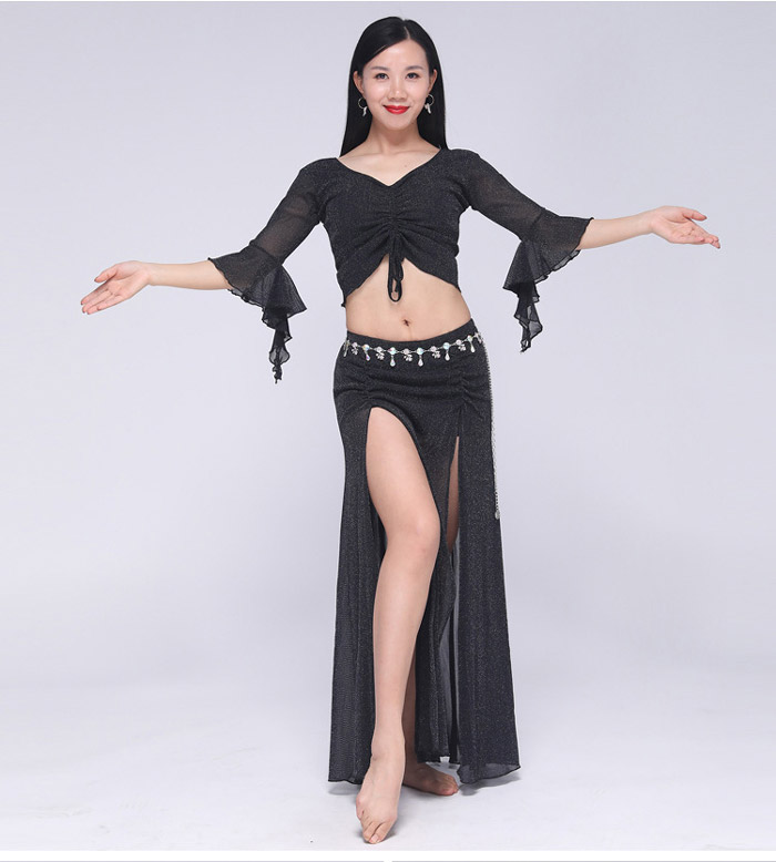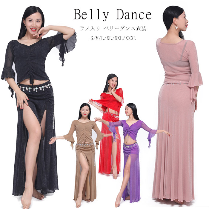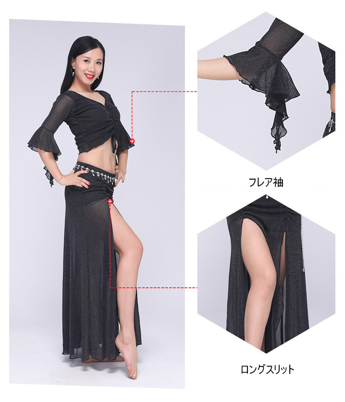 ベリーダンス 衣装 セットアップ フレア袖 トップス ロングスカート 2点セット ラメ入り キラキラ 社交ダンス レッスン着 練習着 セット ダンス ダンスウェア レ レッスンウェア